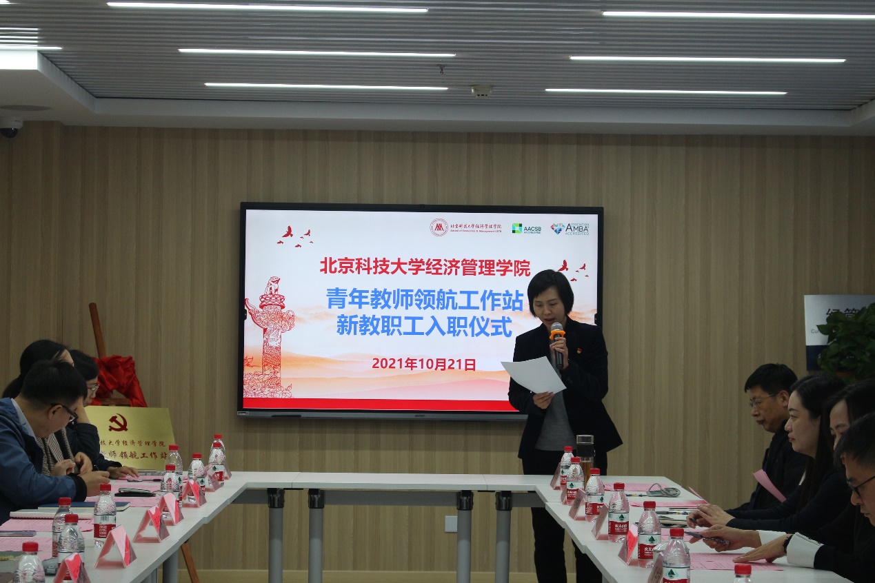 2021年10月21日下午,北京科技大学江南在线客服青年教师领航工作站新教职工入职仪式在经管楼1205隆重举行。学校党委副书记、纪委书记戴井岗,学院领导班子成员、全体成长导师和全体新入职青年教职工参加了大会。会议由学院副院长、副书记温雅主持。