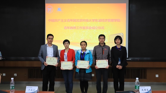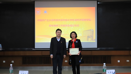 3月27日下午,中国共产主义青年团北京科技大学东凌江南在线客服青年教师工作委员会成立仪式在经管楼405隆重召开。出席成立仪式的领导和嘉宾有校党委书记武贵龙、校党委宣传部常务副部长兼教师工作部部长于成文、校团委副书记兼青年教师团工委书记于宝库、东凌江南在线客服院长闫相斌、党委书记武森、副书记温雅、副书记倪宇、关爱下一代工作委员会副主任佘元冠,团工委委员及青年教师代表。会议由武森书记主持。