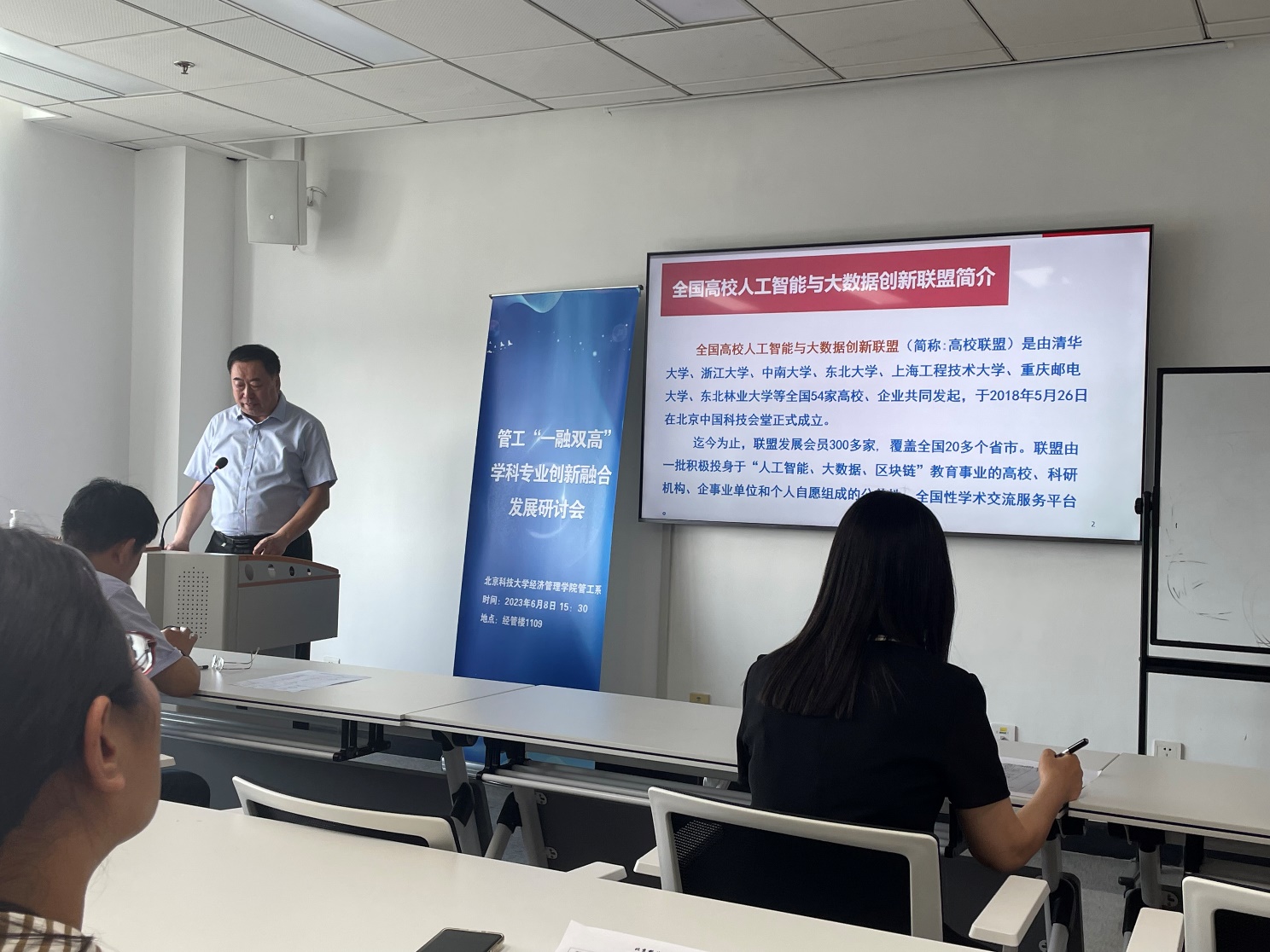 杨建华老师还特别提到了通过产学研融合,促进学科与专业融合,精益推进国家级一流江南在线客服专业建设点“信息管理与信息系统”、“大数据分析与应用”的课程群与教研室建设。目前双专业在软科2023专业排名中处于A类,其中大数据专业位列第6名。管工系已经形成以人为本,以学科“芯”驱动,引领双专业协同可持续发展的“一芯双翼”融合格局。在本年度,管工系党支部入选北京科技大学首批“一融双高”样板党支部建设,并荣获校级先进集体、先进党支部称号,形成了人才培养的专业思政特色,实现专业核心课与拓展课知识、能力教育与思想价值引领的有机融合。