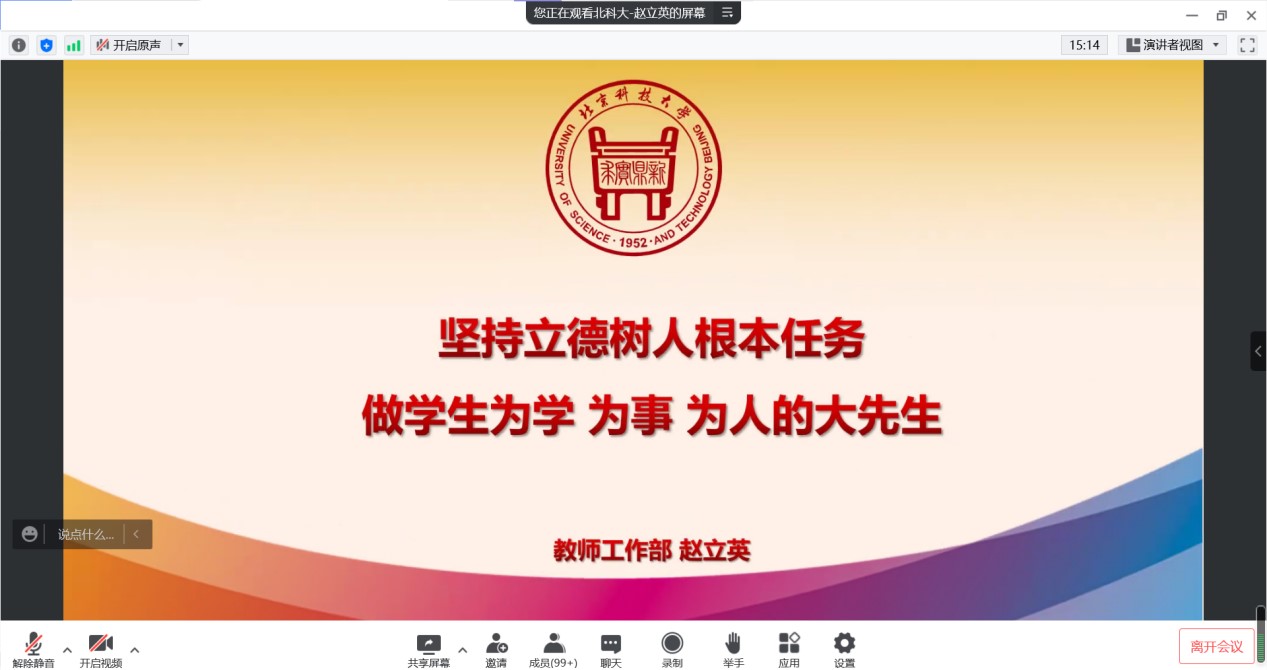 赵立英在报告中重点解读了中央与上级部门关于师德师风建设的重要批示指示精神,强调师德师风是评价教师队伍素质的第一标准;带领大家回顾了新时代师德师风建设的相关制度和高校教师职业行为准则,并进一步明确了学校师德师风建设工作举措。