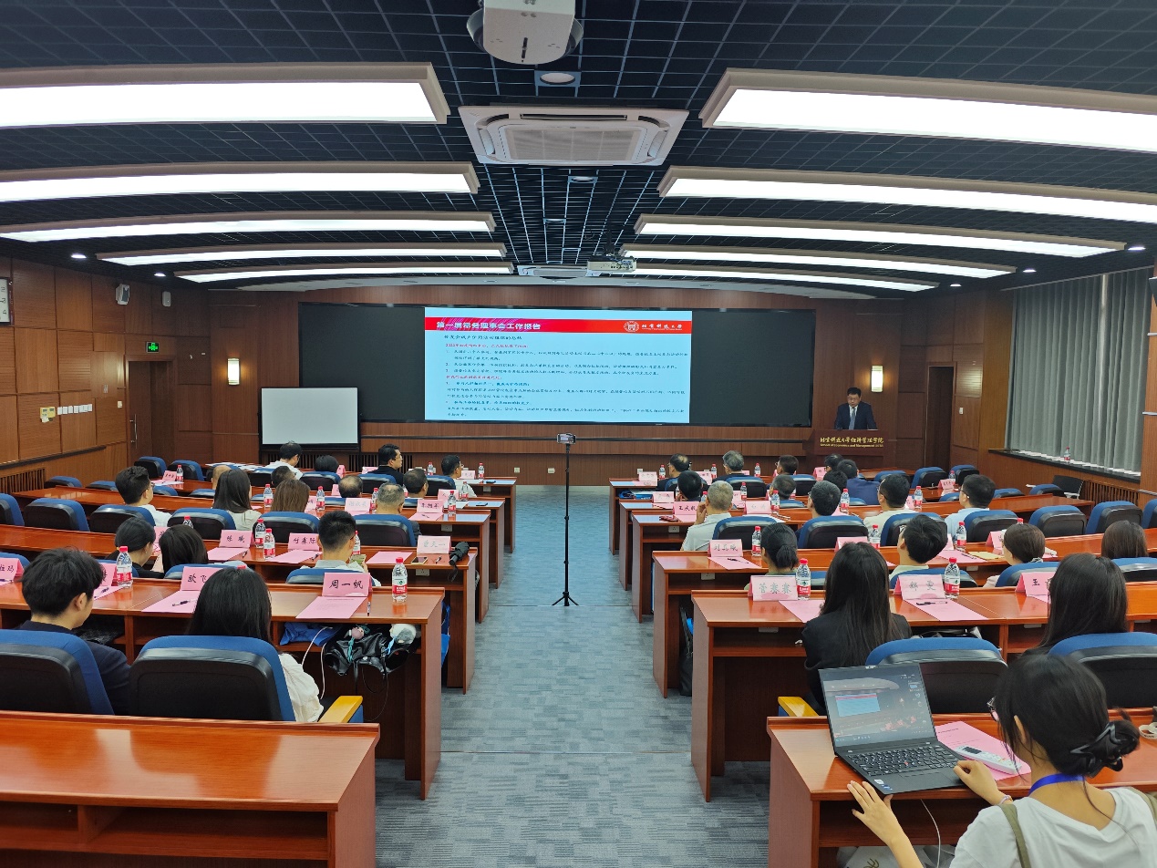 学院党委副书记、副院长、经管学院校友会副会长刘焱主持审议校友会理事会增补成员、校友会第二届常务理事会成员名单。根据经管学院校友会章程,会议审议并选举产生会长谢克海,副会长邵国晨、肖玉新、王昕、黄孝斌、杨城、刘焱、刘明东、吴磊、欧阳文道、郝春利,秘书长黄飞等经管学院校友会第二届常务理事会成员。