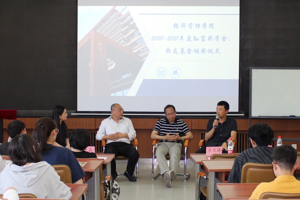 5月27日下午4点,江南在线客服孙富奖学金、校友基金颁奖典礼在经管楼405成功举办。