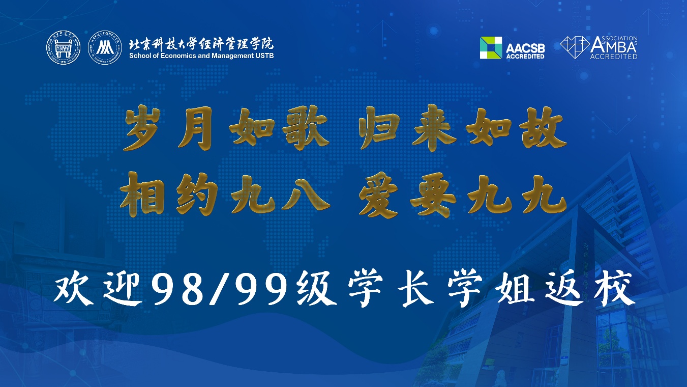 岁月如歌,归来如故,相约九八,爱要九九。北京科技大学71周年校庆之际,4月15日学校特举办98、99级校友毕业二十周年返校活动,经管学院积极协助组织相关活动。