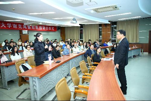 活动于晚上19点30开始。闫相斌院长首先感谢各位嘉宾的到来。聘任仪式中,薛庆国副校长为我院谢克海校友颁发了北京科技大学兼职教授聘书。谢克海校友,现任北大方正集团总裁兼首席执行官,中国人民大学商学院管理实践教授、北京大学光华管理学院管理实践教授、北京大学人力资源开发与管理研究中心研究员。他长期从事企业管理实践与研究,在德国西门子公司工作多年后回归国内企业。在管理实践领域,实现了少有的由外资企业到内资企业跨越,由首席人才官升任大型企业集团总裁兼首席执行官跨越;主要研究领域:战略人力资源管理、领导力提升以及组织重塑再造,并创造性的提出了人力资源管理领域IPODAR、Great和5M模型,研究成果发表在《哈佛商业评论》、《清华管理评论》、《南开管理评论》等权威刊物。