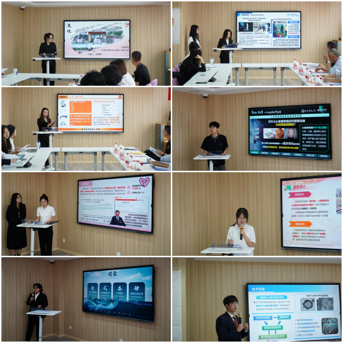 八支团队依次对项目进展做了汇报,重点介绍了项目运营情况及遇到的问题,并对项目下一步发展规划做了说明。专家评委对各项目进行了细致入微的点评,最后针对项目所产生的各种问题进行了解答并给与专业指导。