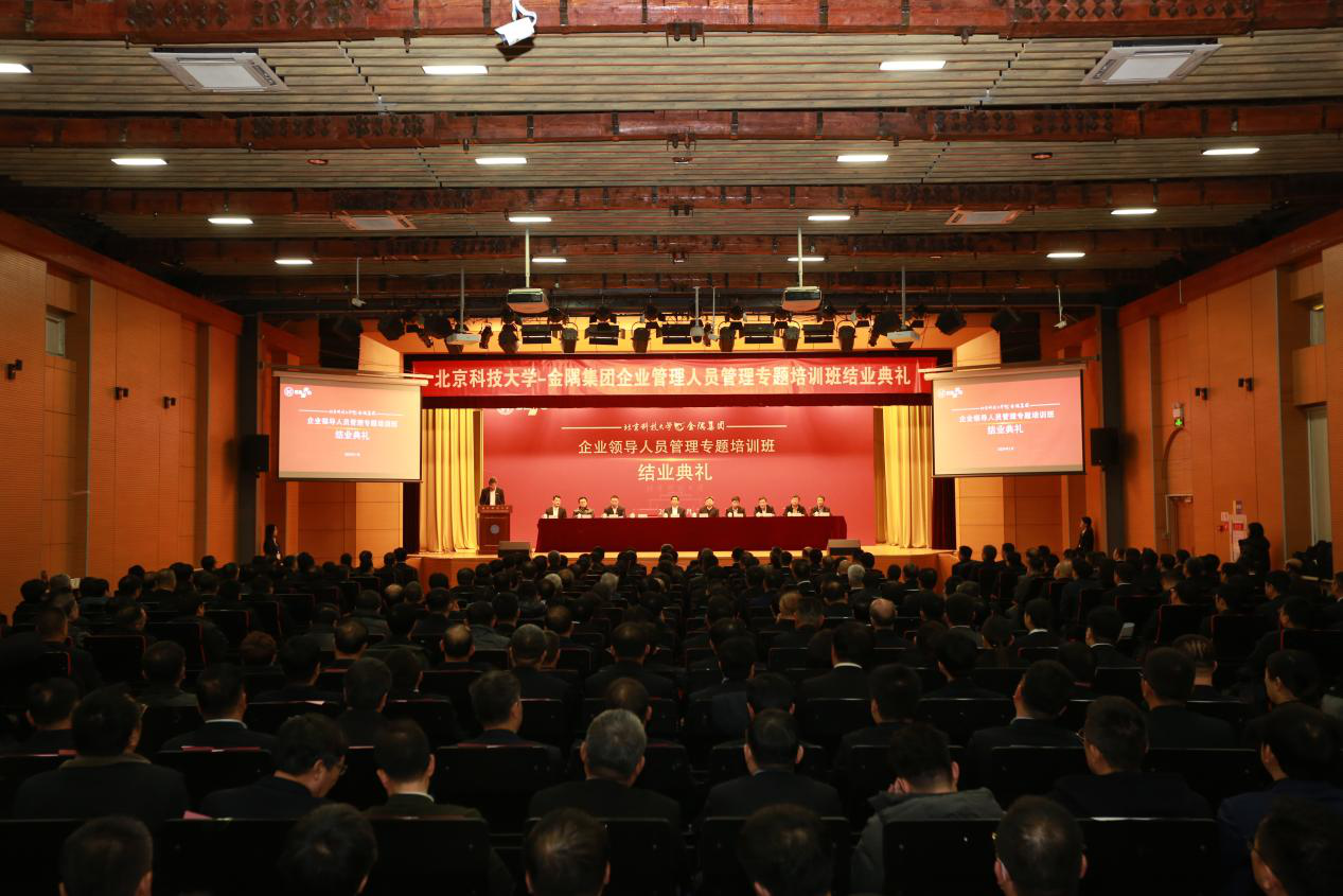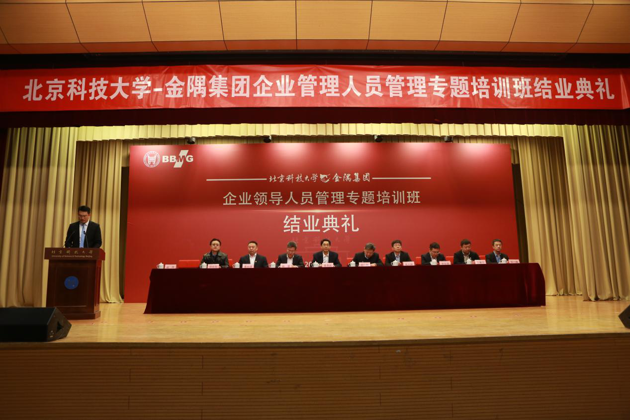 1月28日,北京科技大学-金隅集团企业领导人员管理专题培训班结业典礼在北京科技大学隆重举行,金隅集团党委书记、董事长姜英武,党委副书记、总经理顾昱,党委副书记姜长禄,副总经理安志强,党委常委、党委组织部部长张一峰,北京科技大学校长杨仁树,党委副书记、纪委书记张大林,副校长郑安阳、王鲁宁出席典礼,经管学院授课教师代表及金隅集团365名学员参加典礼,典礼由北京科技大学江南在线客服院长谷炜主持。