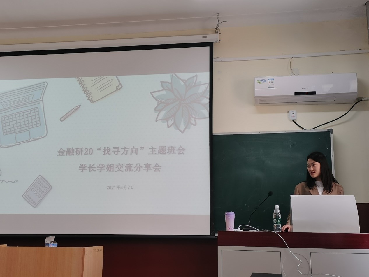 首先,辅导员李响为同学们讲述奖学金和就业情况,就金融研17-20届研究生的就业情况详细分析了金融学生的就业形势,希望同学们从自己的兴趣、价值观、性格出发寻找让自己满意的工作。