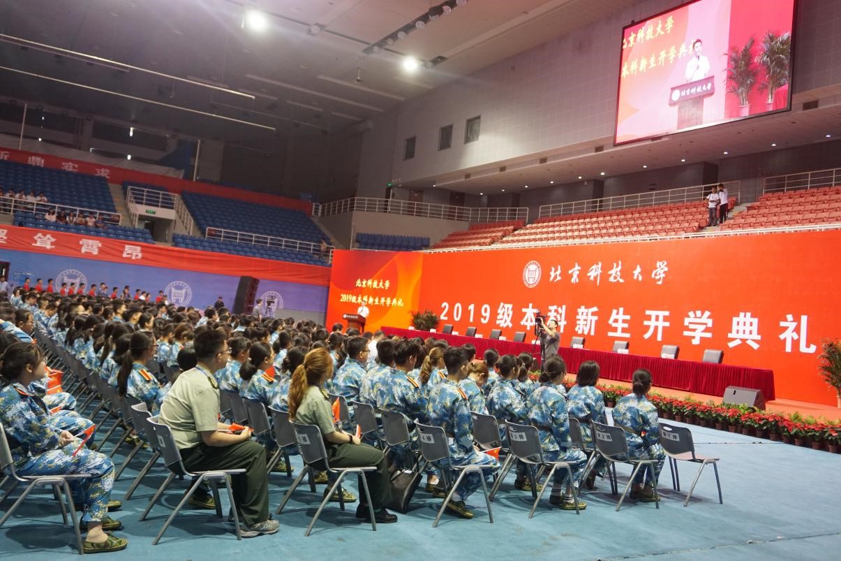 9月2日上午8时,北京科技大学2019级新生开学典礼在体育馆举行。典礼由校党委副书记薛庆国主持,校领导、各部处领导出席,各学院教师代表和2019级全体新生、部分新生家长参加典礼。
