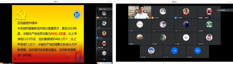 首先,杨创东同志与大家一起回顾了中国共产党诞生纪念日的由来,党支部同志们都真切感受到中国共产党的壮大。截至2019年底中国共产党党员总数为9191.4万名,借此机会还回忆了党支部的组织建设,包括支部成立大会、预备党员转正大会和党员发展大会。