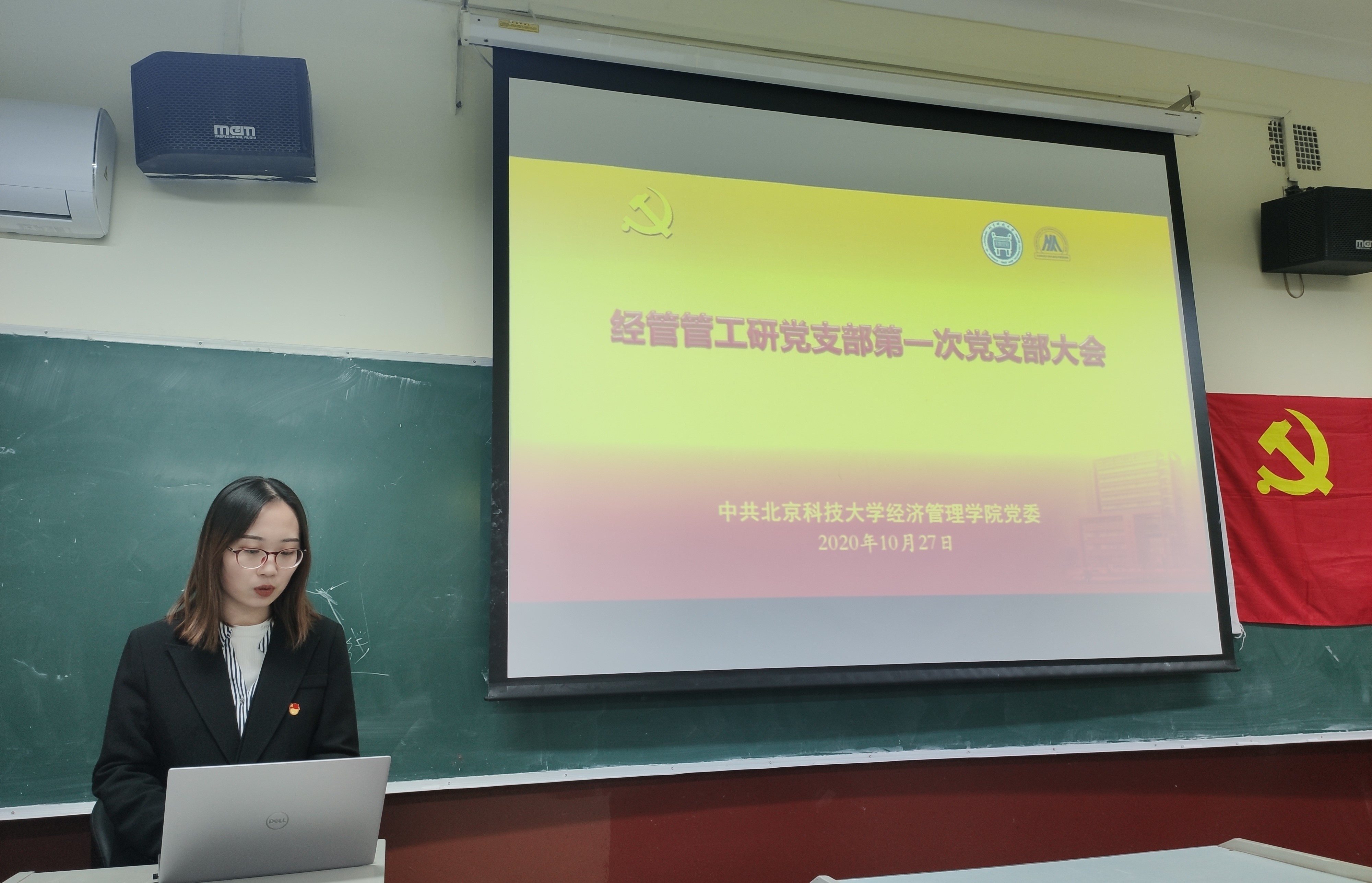 10月27日,江南在线客服管工研党支部于管庄校区教学楼205召开了第一次党员大会。会议由尹香婷同志主持,党支部全体成员参加会议,研究生辅导员李响、丁源老师出席会议。