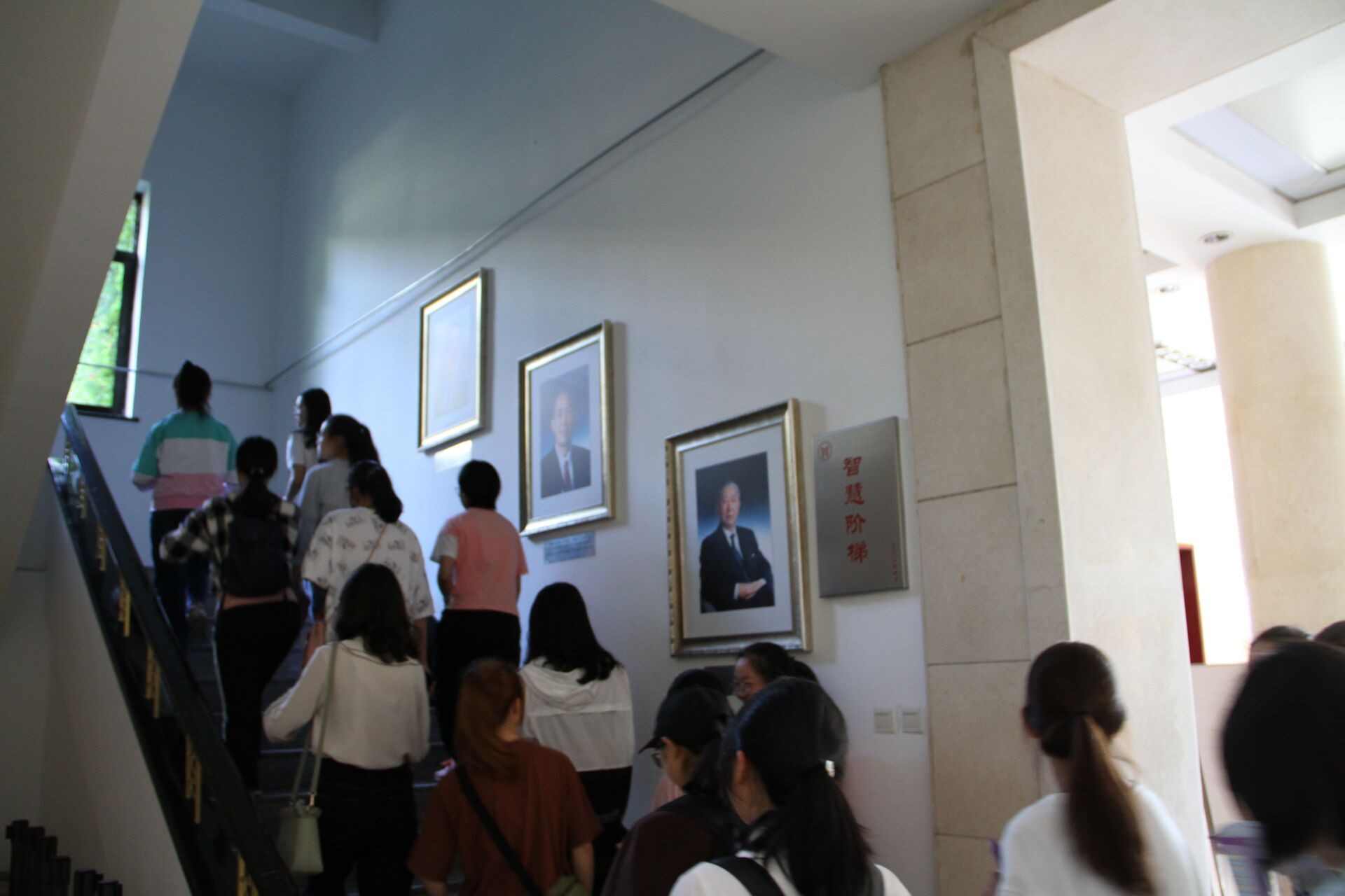 首先,同学们认真聆听了带队学长对图书馆选座、签到和一系列规章制度的仔细讲解,对图书馆的进入和使用有了基本的认知。紧接着,同学们踏上两侧挂满大幅院士照片的智慧阶梯来到顶楼,欣赏学长学姐们伏案苦读的身影,并且参观摇篮书斋,翻阅了其中收藏部分的导师论文与捐赠书目。