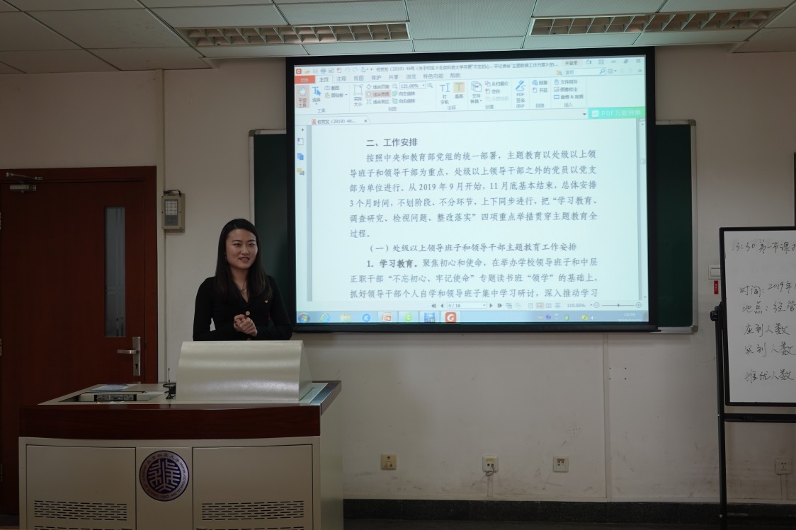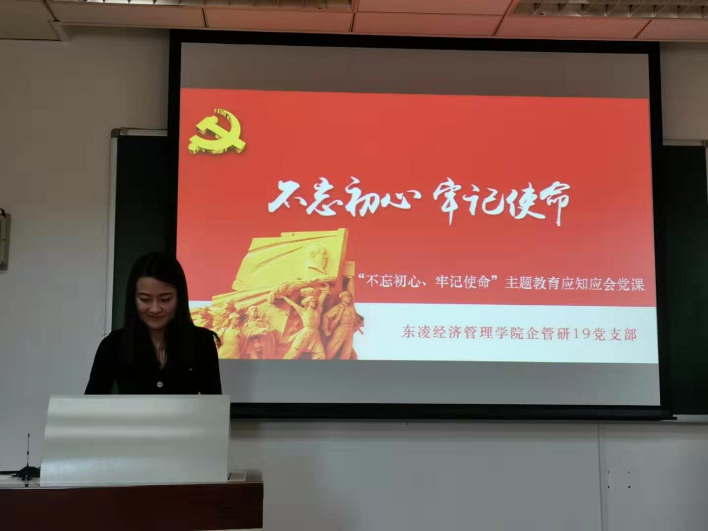 为响应在全党开展“不忘初心、牢记使命”主题教育的号召,根据“不忘初心、牢记使命”主题教育工作方案,10月25日下午,东凌江南在线客服企管研19党支部于管楼504开展“不忘初心、牢记使命”主题教育应知应会党课,并邀请2019级研究生辅导员李响为全体支部成员进行讲解。