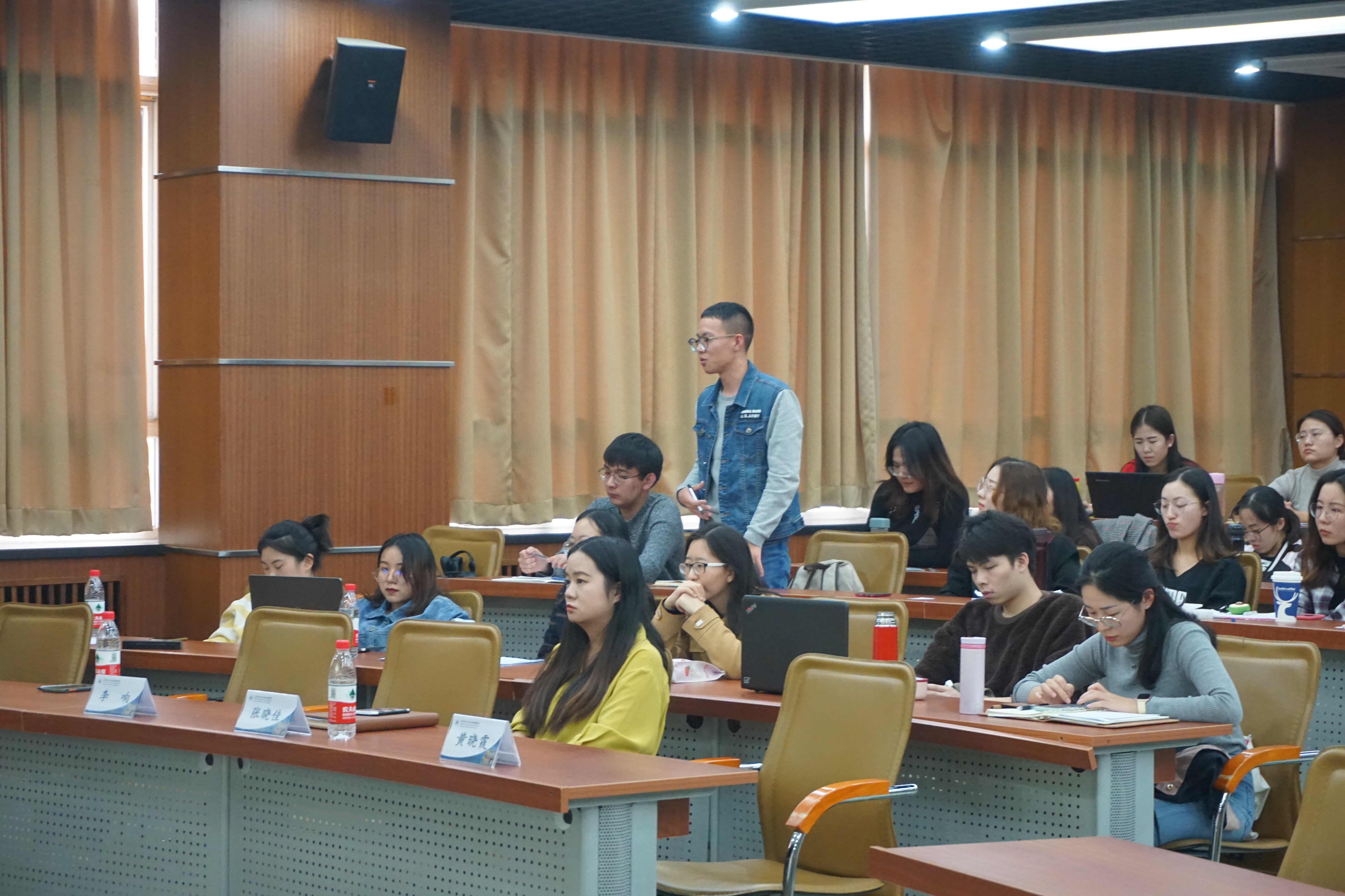 就如何做好研究,黄晓霞给出以下三方面的建议:付出时间、夯实基础、积极思考。做科研时必须有足够的专业知识,要独立积极思考,发挥主观能动性,同时也要尊师长,勤奋上进,有想法或困顿时及时与老师沟通。就如何确定选题,黄晓霞强调选题要新颖也要具备现实管理实践意义。她建议同学们可以从参与老师的课题、高质量的讲座、期刊论文的阅读、时政经济新闻四方面获得选题。最后,同学们就自己遇到的困惑进行提问,黄晓霞就如何协调科研与实习等问题做出说明和指导。