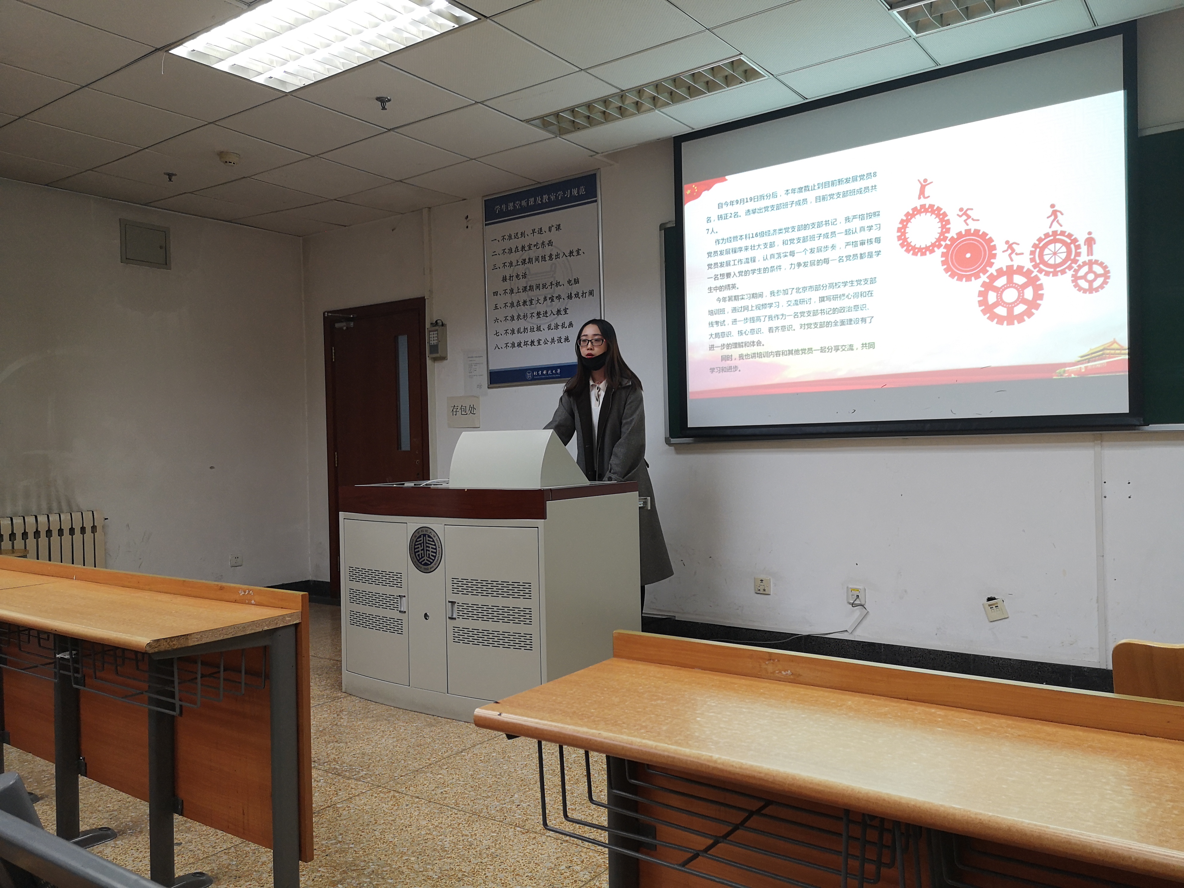 接下来是班子成员党小组长述职。经济1601党小组长邱轲同学总结了党小组成员们参与的支部活动,并反思了自己开展工作以来的不足之处。经济1602党小组组长卢慧婷同学从之前提交的愿景出发,总结了自己成为党小组长以来组织的工作以及对未来工作的规划。