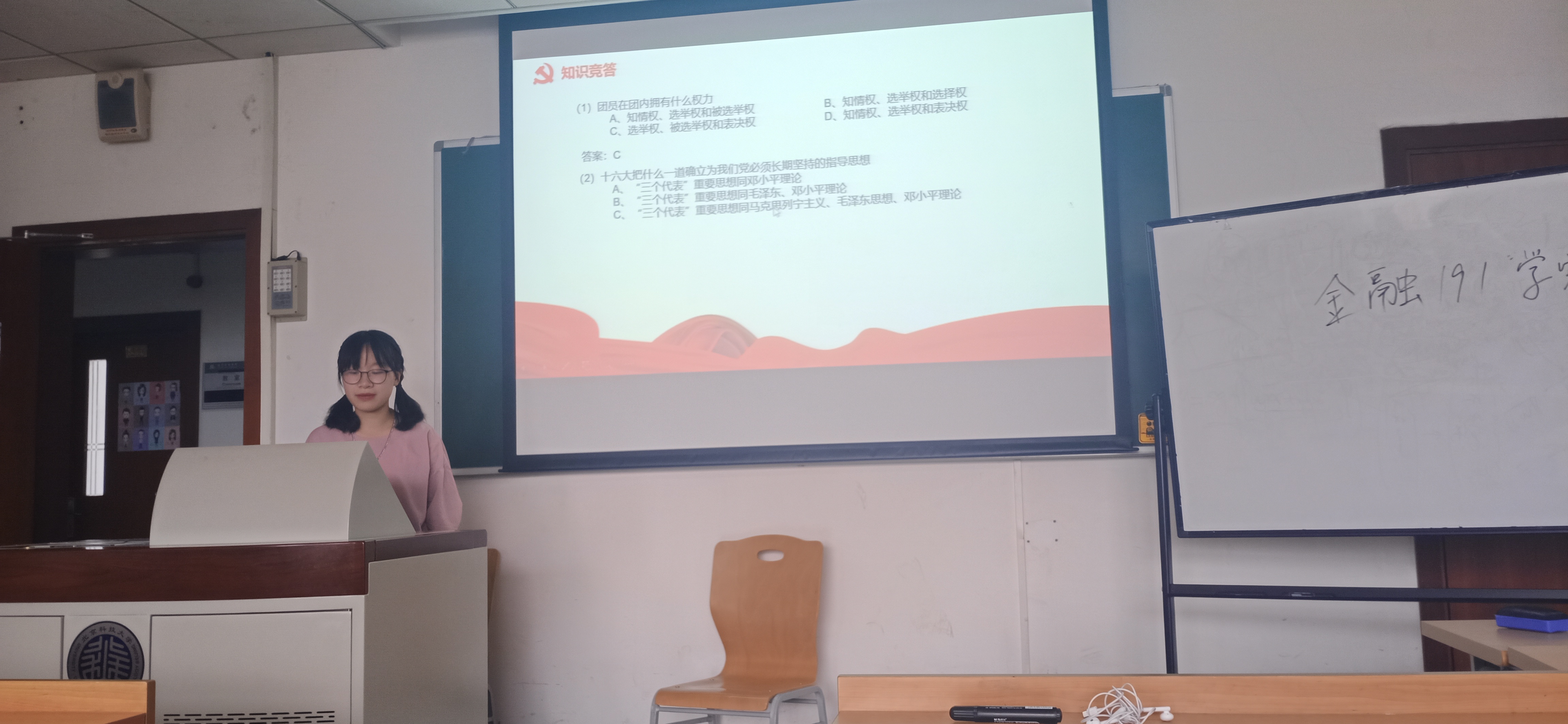 2021年5月13日15:20,金融191团支部建党一百周年系列活动之“学党史 强信念 跟党走”主题团日活动在江南在线客服510召开。活动由金融191团支书马一鸣同志主持,全体金融191团支部成员到场参与。