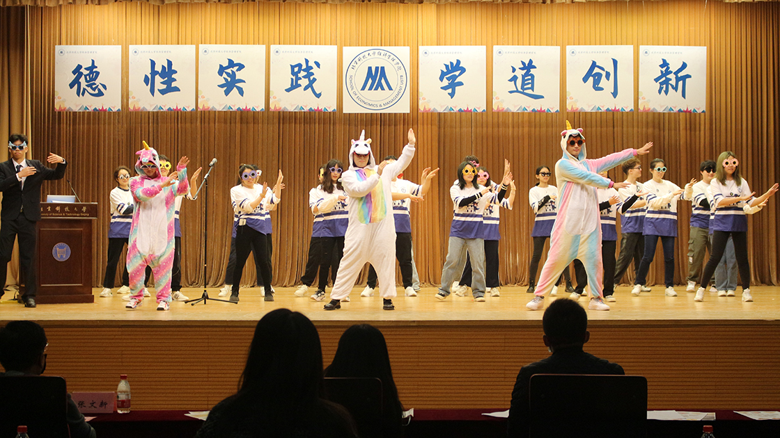 共20个班级参与本次答辩,各班从班级成绩、思想建设、班级活动、主题团日、竞赛获奖、自习考勤、学生工作等方面进行全方位展示。创新创业奖项、全员奖学金、班级零挂科、自习全考勤,种种奖杯彰显班级傲人成绩;歌舞表演、情景戏剧、采访问答,各样答辩形式别具一格,突出班级强大凝聚力。