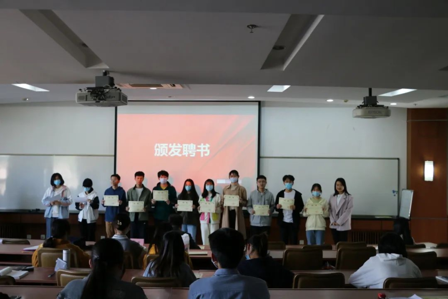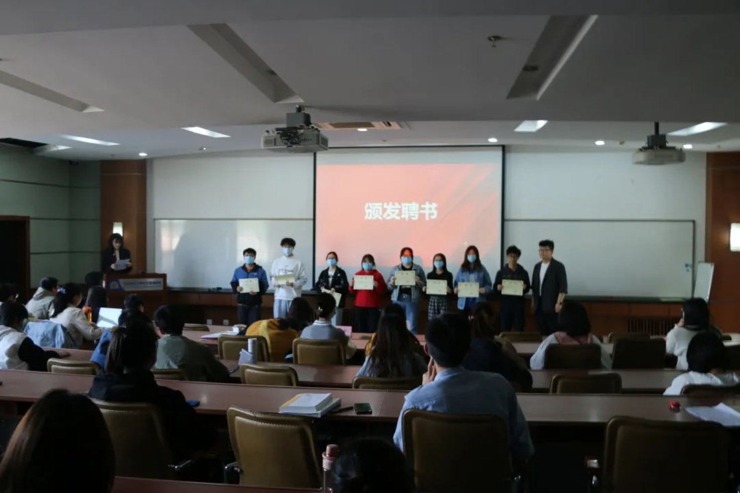 第二个环节是尹希尧老师和李响老师为江南在线客服21级全体宿舍长颁发聘书,满满的仪式感令宿舍长们备受鼓舞。