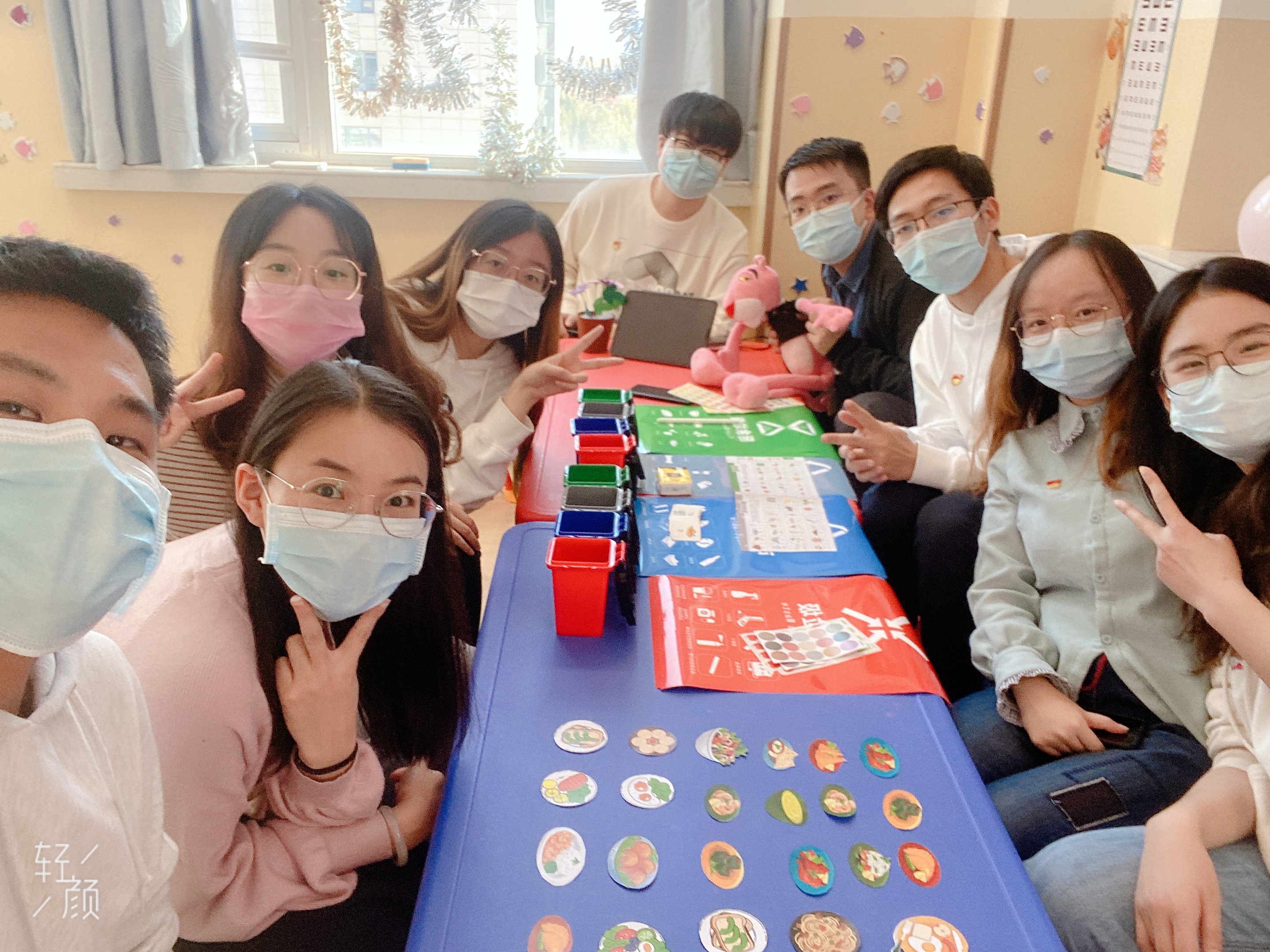 垃圾分类游戏。虽然小朋友每天都在医院接受治疗,不能去学校,但是他们依旧好学,垃圾分类的知识都有所了解,看着他们快速掌握,正确地把垃圾扔进对应的垃圾桶里,为他们感到高兴。