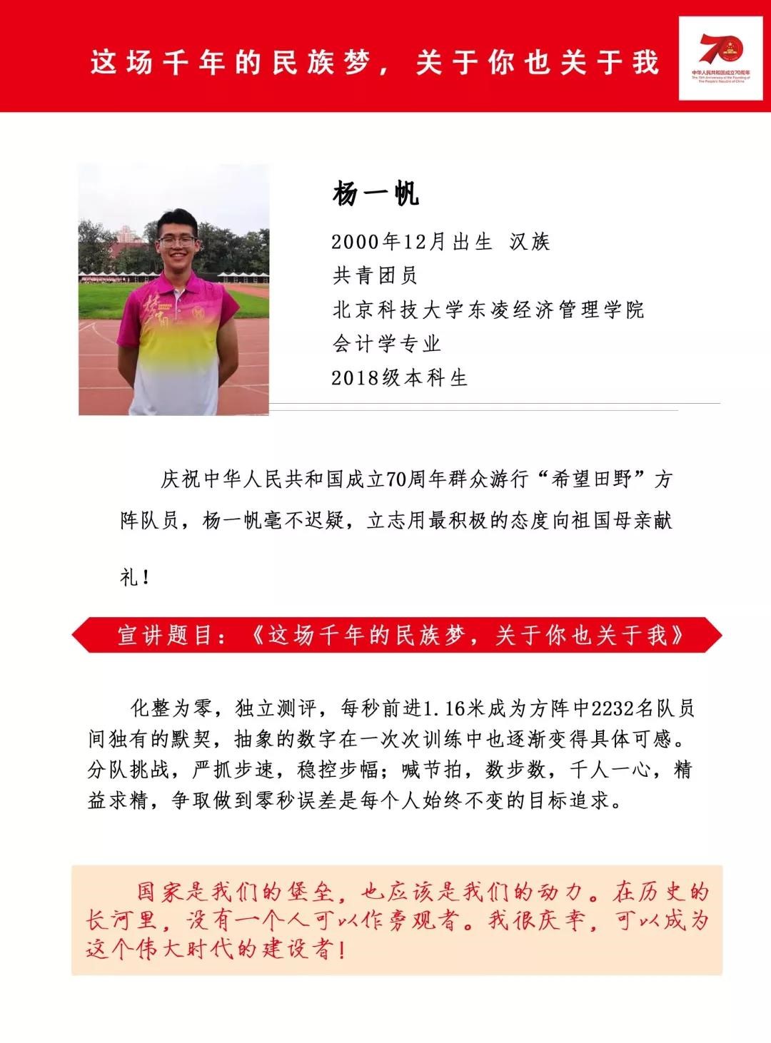 国庆游行活动结束后,北京科技大学东凌江南在线客服组建了“爱国情 强国梦 报国行”——东凌江南在线客服庆祝新中国成立70周年国庆活动宣讲团。宣讲团由三名经管学生组成,他们分别参与到70周年国庆活动的广场合唱、志愿服务以及群众游行活动中。宣讲团成员们以自己亲身参与活动的经历和感悟为内容进行宣讲,用实际行动向祖国表白,弘扬爱国之情,宣传爱国之志。