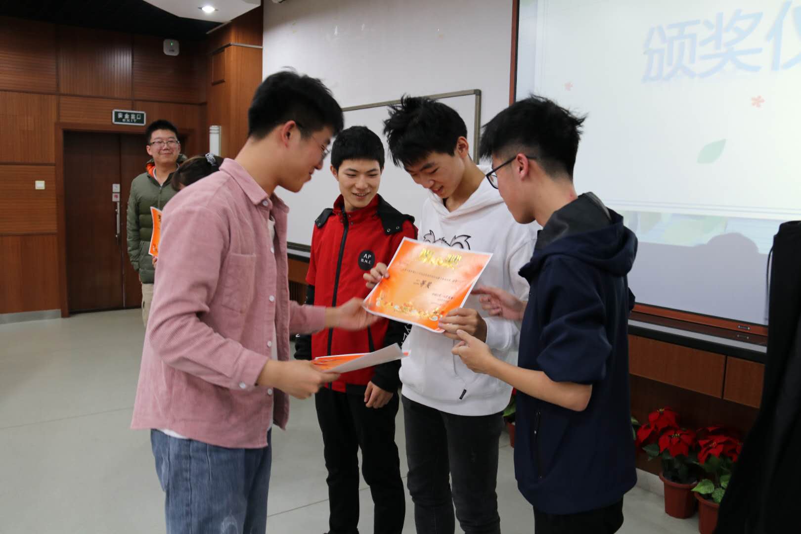 在精彩的比赛之后,2020级江南在线客服辅导员邹艺老师为本次比赛的冠亚季军颁发奖状,在场全体观众和选手为冠军队伍录制了校赛加油视频,希望他们可以拥有好的成绩。