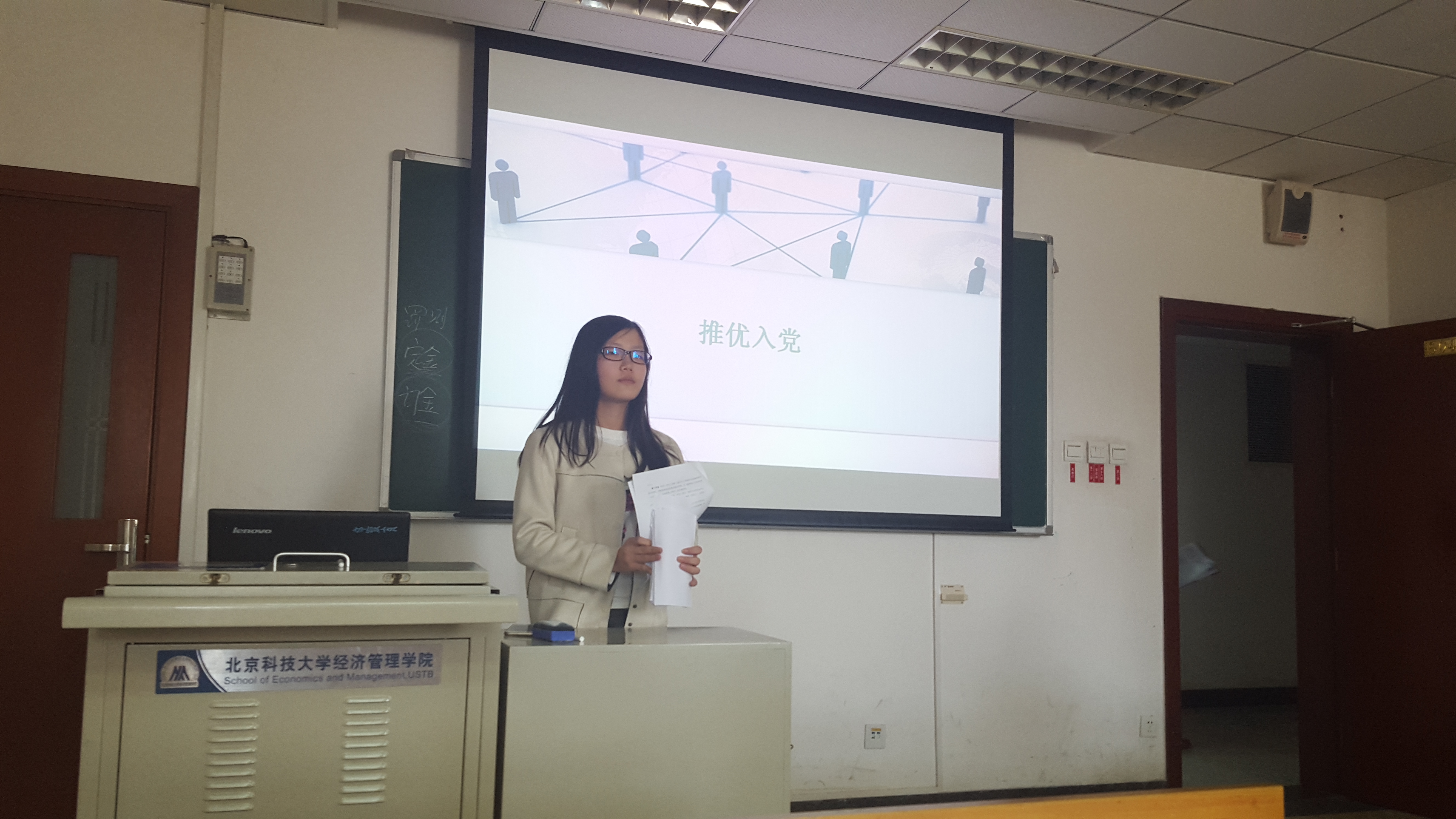 3月29日下午,管理1503班全体同学在管楼504召开了入党推优大会。根据《北京科技大学推优入党工作实施办法》和《推优入党工作细则》,本次入党推优大会将从八名候选人中选出三个入党积极分子。