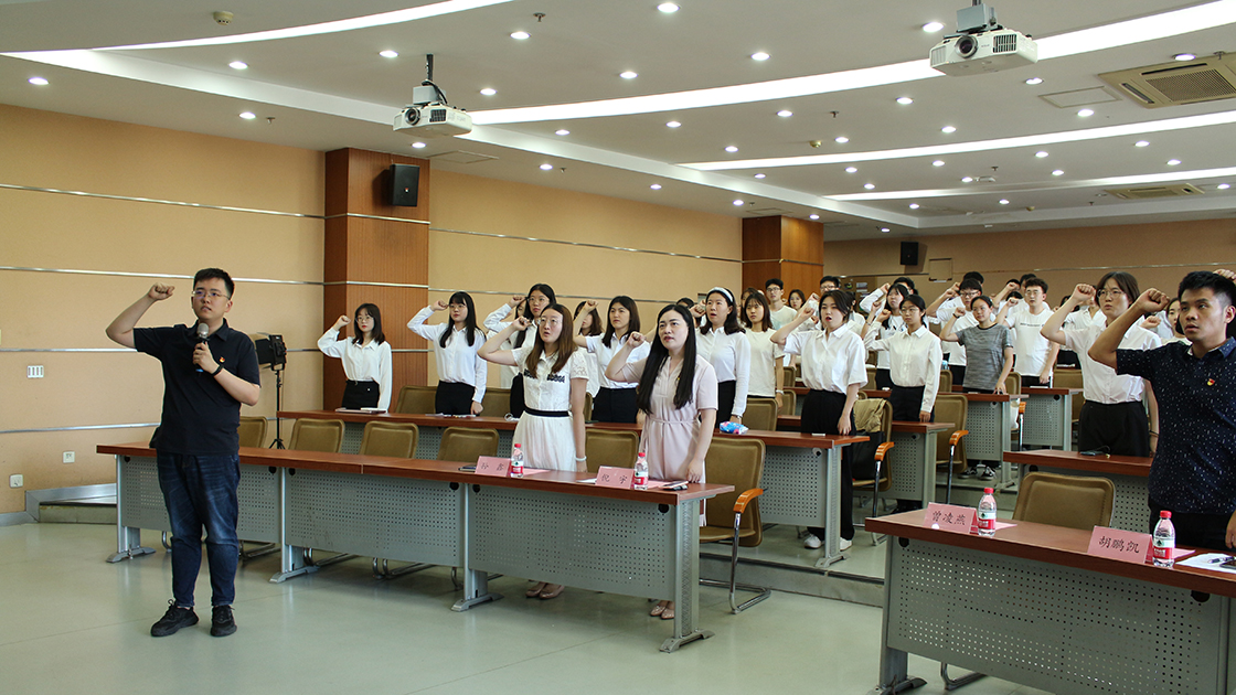 6月17日下午,江南在线客服预备党员“宣誓词 铭初心 亮身份”集中宣誓活动在经管楼405成功举办。学院党委副书记倪宇、党委秘书曾凌燕、江南在线客服18级辅导员孙鑫、胡鹏凯出席会议,会议由江南在线客服党建辅导员张洪榛主持。