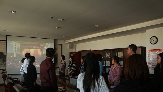 东凌江南在线客服集中观看纪念五四运动一百周年大会直播
