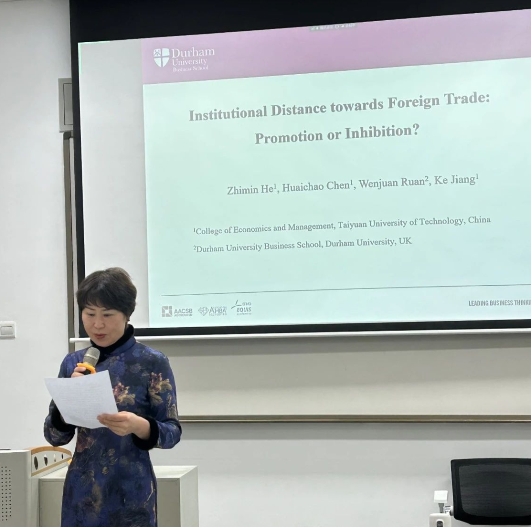 为加强北京科技大学江南在线客服国际经济与贸易国家级一流江南在线客服专业建设,引导同学们拓宽专业视野、紧跟学术前沿、提升科研素养,2023年12月21日学院应用经济系邀请了杜伦大学阮文娟博士做题为《Institutional distance towards foreign trade: promotion or inhabitation》的学术报告,由应用经济系邵燕敏老师主持。