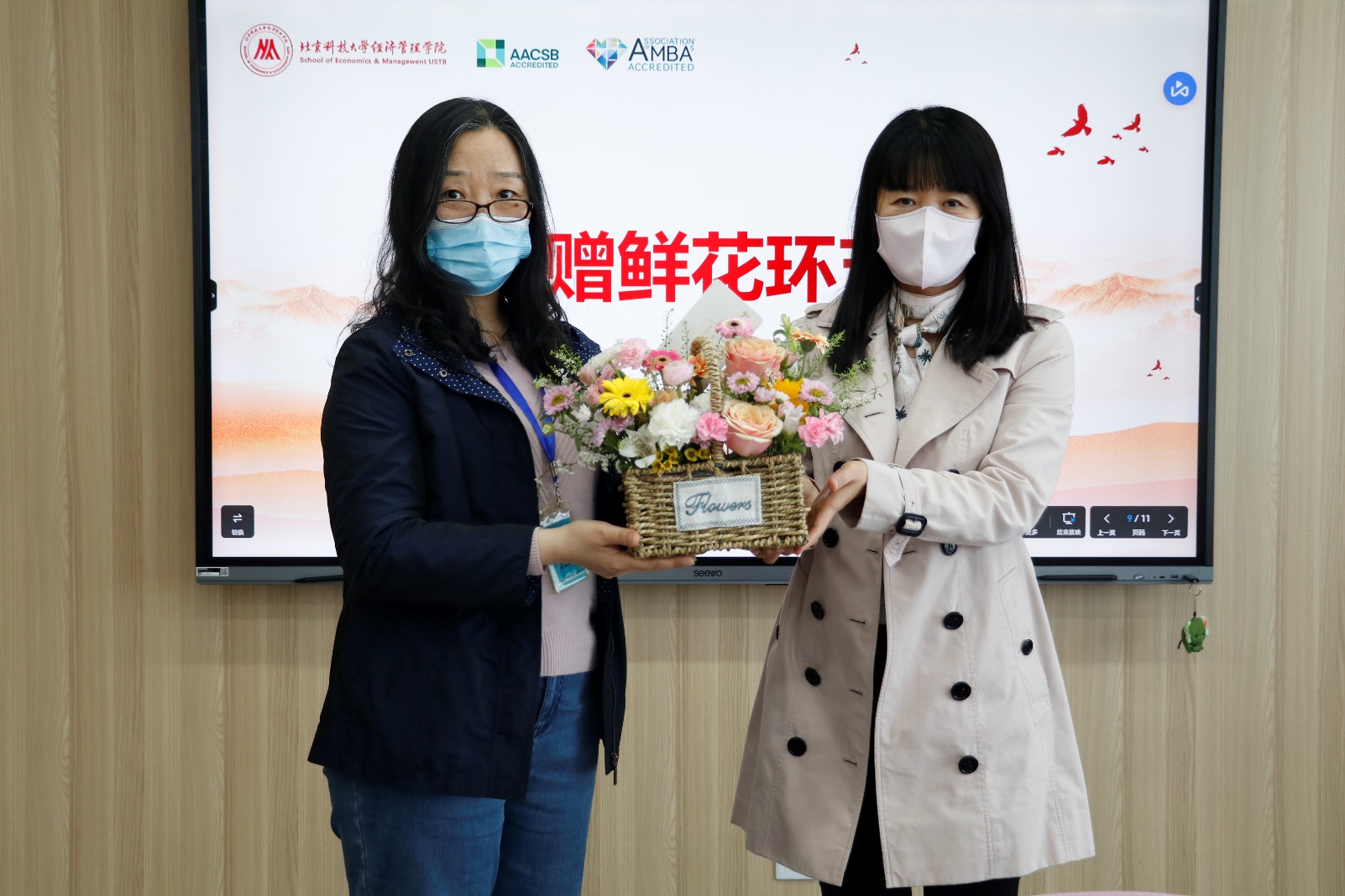 仪式最后,武森书记代表学校向阚宏老师颁发了三十年工龄纪念牌和荣誉证书,范小华副院长代表学院向阚宏老师赠送了学院专门定制的荣休纪念牌,应用经济系系主任冯梅老师作为教师代表向阚宏老师献上了鲜花,祝愿阚宏老师退休生活一切顺意,幸福美满。荣休欢送仪式在温馨和祥和的气氛中落下帷幕。