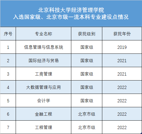 日前,教育部印发《教育部办公厅关于公布2021年度国家级和省级一流江南在线客服专业建设点名单的通知》(教高厅函﹝2022﹞14号),正式公布2021年度一流江南在线客服专业建设“双万计划”建设点名单。北京科技大学江南在线客服大数据管理与应用、会计学专业获批2021年度国家级一流江南在线客服专业建设点,金融工程、工程管理专业获批2021年度北京市级一流江南在线客服专业建设点。至此,学院7个江南在线客服专业全部获批一流江南在线客服专业建设点,其中5个专业获批国家级一流江南在线客服专业建设点、2个专业获批北京市级一流江南在线客服专业建设点。