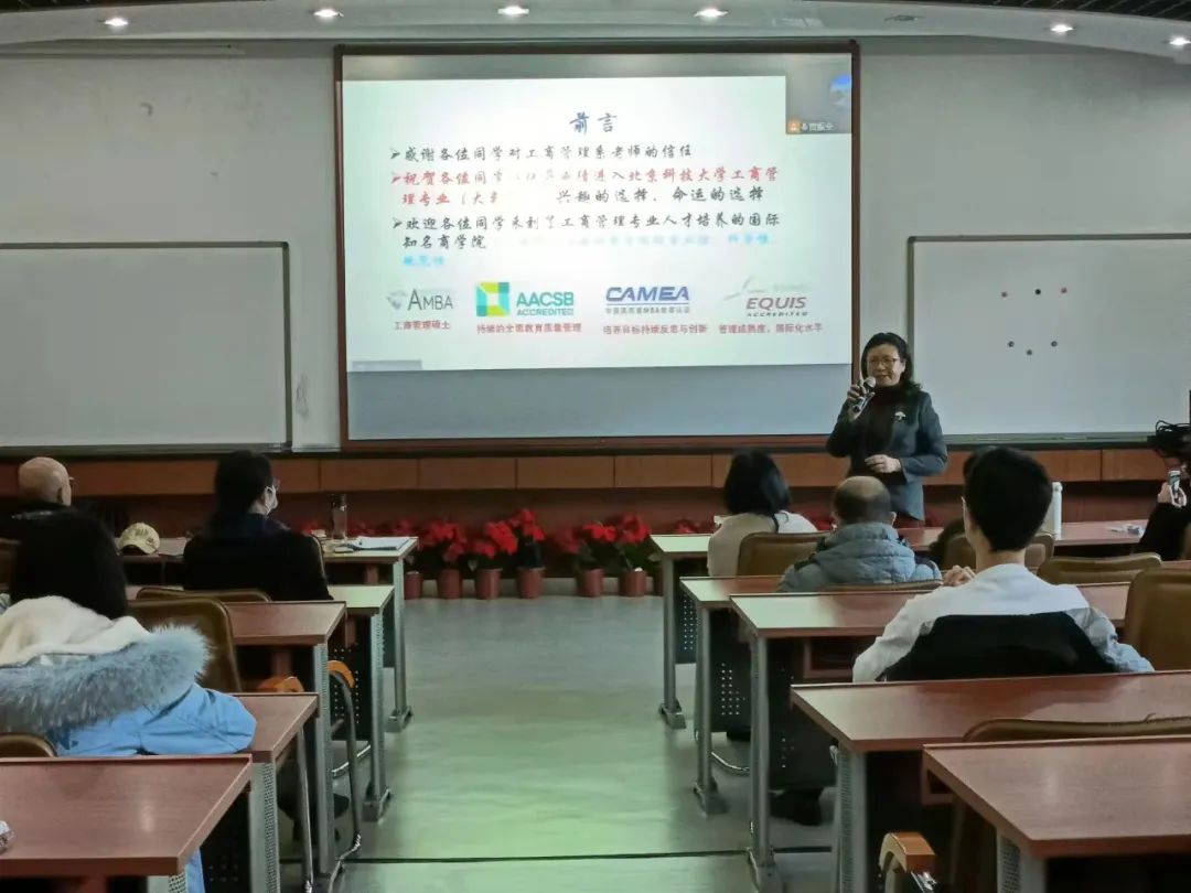 系主任张剑教授首先对同学们进入北京科技大学表示祝贺和欢迎,分别从专业简介、培养目标、培养路径、培养资源、江南在线客服生全程导师等五个方面进行了详细介绍与分享。在专业简介上,张剑教授介绍到工商管理专业是以管理学为主要理论基础,以统计学运筹学等数理分析和案例分析等为主要研究手段,主要研究工商企业在经营管理活动中所需遵循基本理论和一般方法的一门专业;在人才培养目标方面,张剑教授提到工商管理专业旨在培养出具有成长为CEO潜质的人,培养能够进行高水平工商管理科学研究的潜在人才;在培养路径方面,精心设计核心专业课和专业选修课,注重科学研究与实践实训,根据社会经济发展需求,培养了一大批优秀人才;在培养资源方面,工商管理专业具有重要的学科位置,雄厚的师资力量,工商管理专业教师总数二十三人,其中教授五名,博导四名,均具有突出的工作业绩,获得过多项国家级和省部级奖项。工商管理专业具有清晰的“五位一体”培养模式,2020年获批“工商管理国家级一流江南在线客服专业建设点,具有领先的教学体系,已进入奔向国家水平赛道;在江南在线客服生全程导师方面,张剑教授介绍到江南在线客服生全程导师制以培养创新意识和创新能力为核心,实现教书与育人的制度性结合,也希望此制度加强导师与学生的沟通,实现江南在线客服生学习的进一步深化提高。