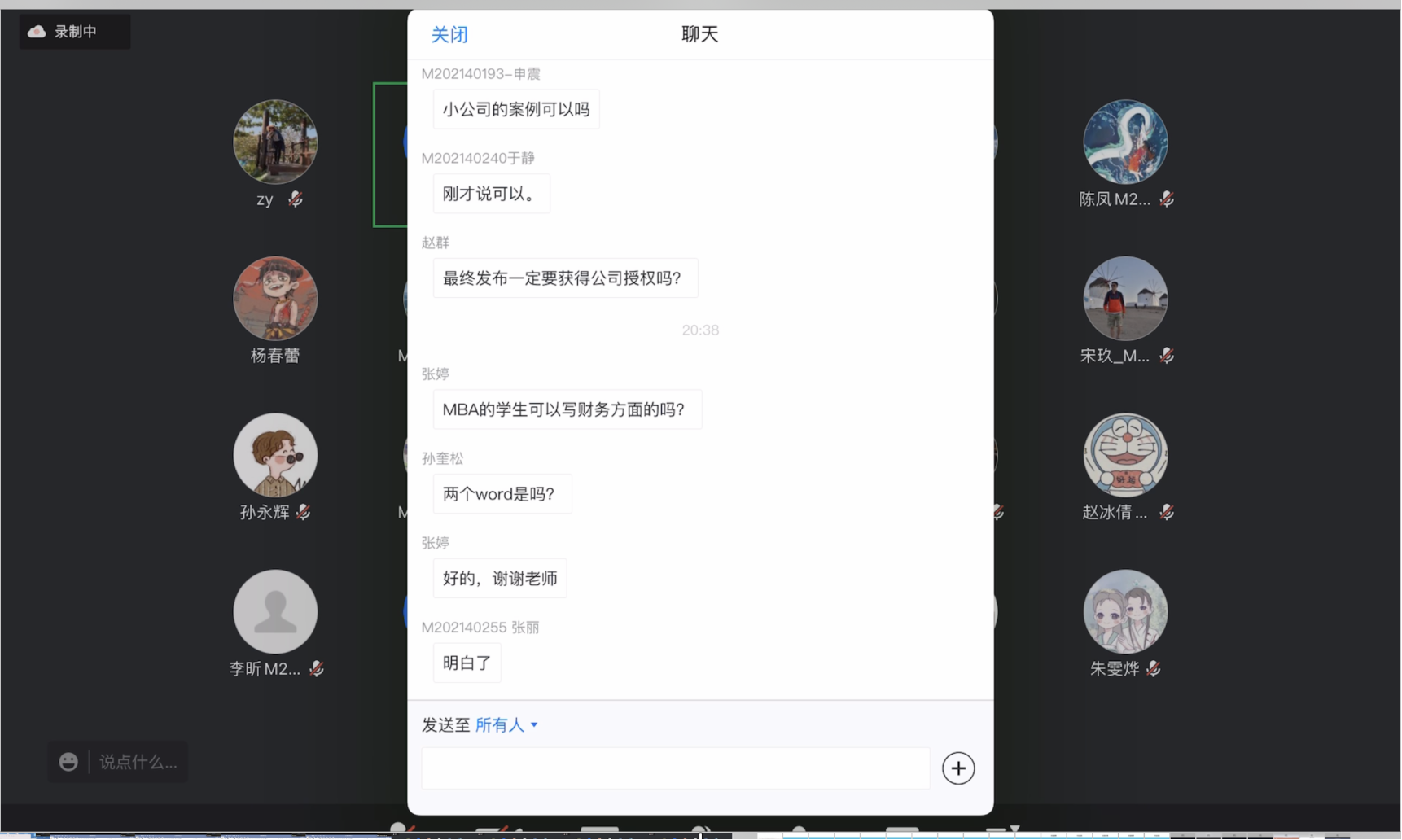 完成分享后,姚卿老师与同学们展开了积极的线上互动,同学们踊跃发言,准备了在案例写作过程中遇到的种种疑问: