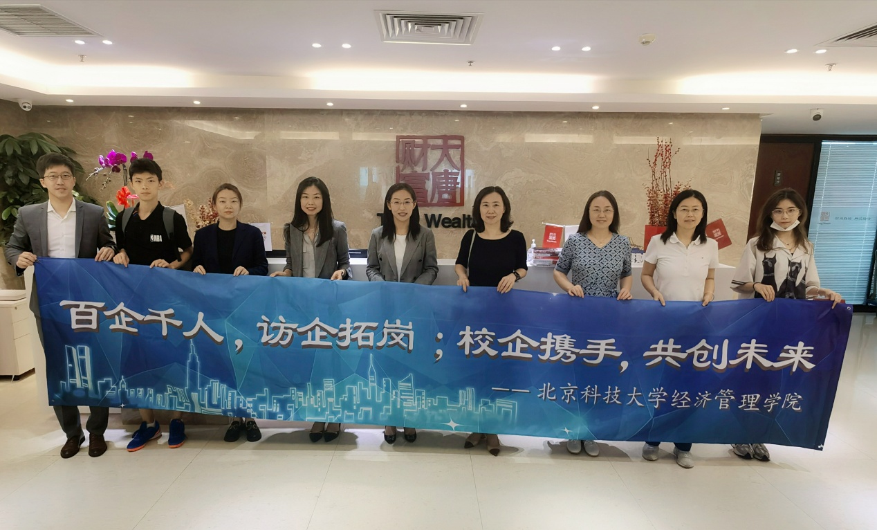 本次走进大唐财富是北京科技大学江南在线客服开展的又一次“百企千人·访企拓岗”促就业专项行动。在未来,学院会持续推进校企协同,整合社会资源,推动人才培养、科研合作、教师发展、课程建设等各项工作。