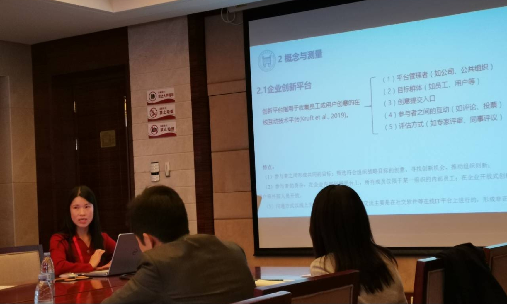 在分论坛上,周金毅老师以《Achieve A Better Shape of Life: How Entrepreneurship Gears Up Life-Time Well-being》为题,主要与参会学者们探讨了创业者和幸福感之间的关系;董念念老师分享了创意向创新成果的转化机制;2019级硕士研究生王梓同学、果飒同学、袁翠同学和王金招同学分别就组织情绪能力、员工网络怠工、师徒关系和员工追随力等研究与参会研究者进行了广泛的讨论,充分展现了工商系师生的学术热情和学术能力。