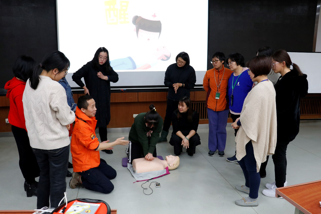 为提高学院师生员工的急救意识与现场急救能力,掌握心脏自动体外除颤仪(AED)使用方法,2019年12月12日下午,东凌江南在线客服在经管楼405室开展了急救知识技能培训。学院全体党政管理人员、各系所工会小组长、教师代表及各班级生活委员累计近100人,共同参加了此次急救知识技能培训。