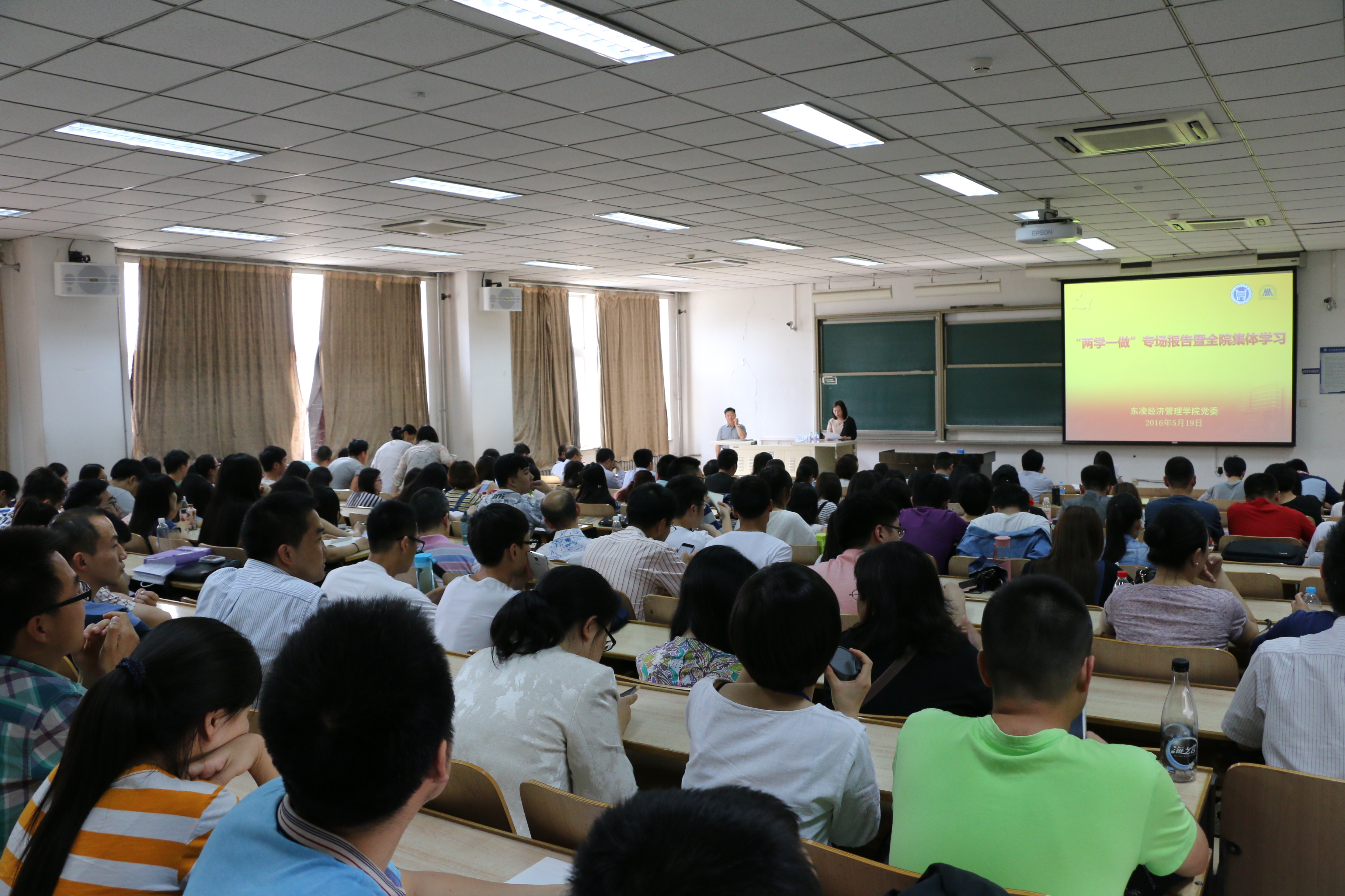 为推动全面从严治党向基层延伸,巩固拓展党的群众路线教育实践活动和“三严三实”专题教育成果,贯彻落实学校党委关于在全体党员中开展“学党章党规、学系列讲话,做合格党员”学习教育的工作部署,5月19日下午,东凌江南在线客服“两学一做”专场报告暨全院集体学习在逸夫楼105举行,学院党政领导班子成员、党委委员、全体教职工和学生党员代表参加了学习,学院党委书记戴淑芬主持学习会。