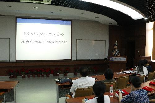 接着,黄晓霞副院长从MBA论文格式与内容的几点说明和指导注意事项等方面向全体与会人员作介绍;实验信息中心主任鲁奇向全体与会人员详细说明了学院开放共享资源。