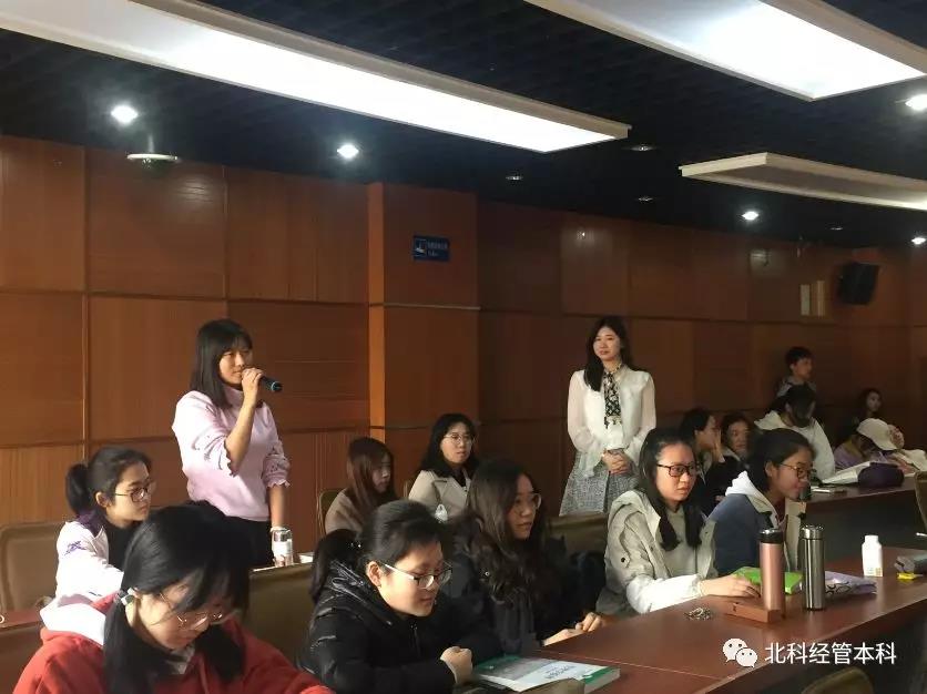 随后,盛老师邀请了第一届北京科技大学“跨境电商”创新创业比赛的两位全国奖获奖团队队长上台分享参加比赛的心得与体会。