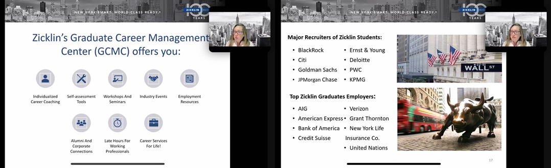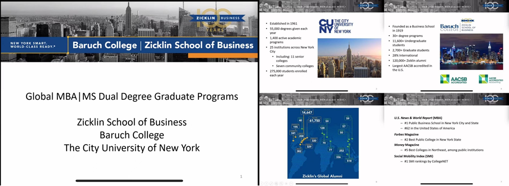 2022年12月14日晚,北京科技大学江南在线客服与纽约市立大学巴鲁克分校杰克林商学院合办的硕士双学位项目线上宣讲会顺利举办。宣讲会邀请杰克林商学院研究生项目执行主任HelaineKorn教授和国际项目专员Rong Yan老师进行项目介绍,学院江南(中国)与交流办公室主任赵霞以及来自学硕和MBA项目的三十余名学生参与了此次宣讲。