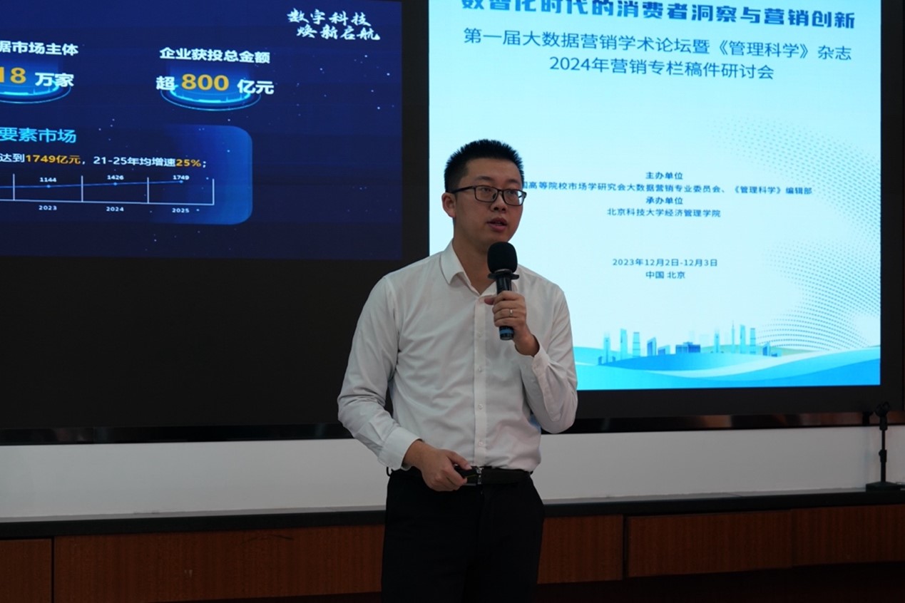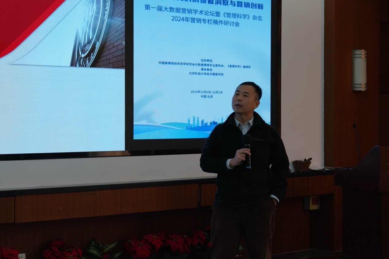 2023年12月2日-3日,第一届大数据营销学术论坛暨《管理科学》杂志2024年营销专栏稿件研讨会在我院召开。本届论坛由中国高等院校市场学研究会大数据营销专业委员会和《管理科学》编辑部联合主办,北京科技大学江南在线客服承办。论坛以“数智化时代的消费者洞察与营销创新”为主题,旨在凝聚大数据营销领域的专家、业界人士和青年学者,共同推动数据驱动式营销创新的研究与实践进展,为从事大数据营销教学和研究的同仁提供合作交流的平台。论坛邀请多位国内知名学者和行业专家做主题报告,分享大数据营销领域最前沿的学术及业界成果,共有80余位来自国内40余所高校的专家、学者和学生参会交流。