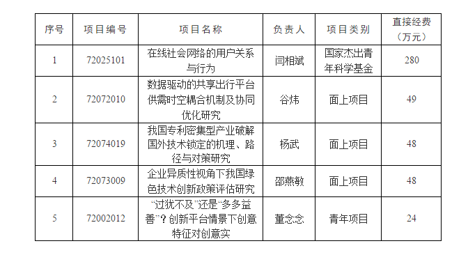 近期,国家自然科学基金委员会公布了《关于2020年度国家自然科学基金申请项目评审结果的通告》,我院共5项项目获得资助,直接经费合计449万元。其中,含国家杰出青年科学基金1项、面上项目3项和青年科学基金1项。