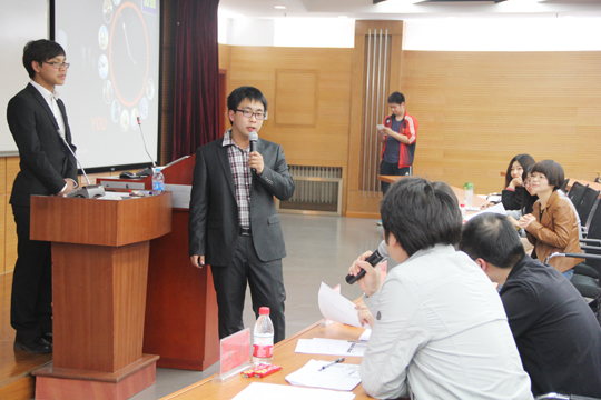2013年4月22日星期一晚7点整,北京科技大学管理协会协同联通公司共同举办的“联通杯”校园营销大赛在管楼210 开展了复赛的第一场角逐。东凌江南在线客服苏玲老师、赵珂老师、联通公司代表宋平、王钊、2011级辅导员周政奇以及第三届营销大赛的冠军李思纯,出席了本次复赛并担任评委。“联通杯”营销大赛复赛由自由营销和PPT答辩组成,在PPT答辩的环节中,参赛选手需要对其营销策划,营销成果和感想做出简要的阐述。