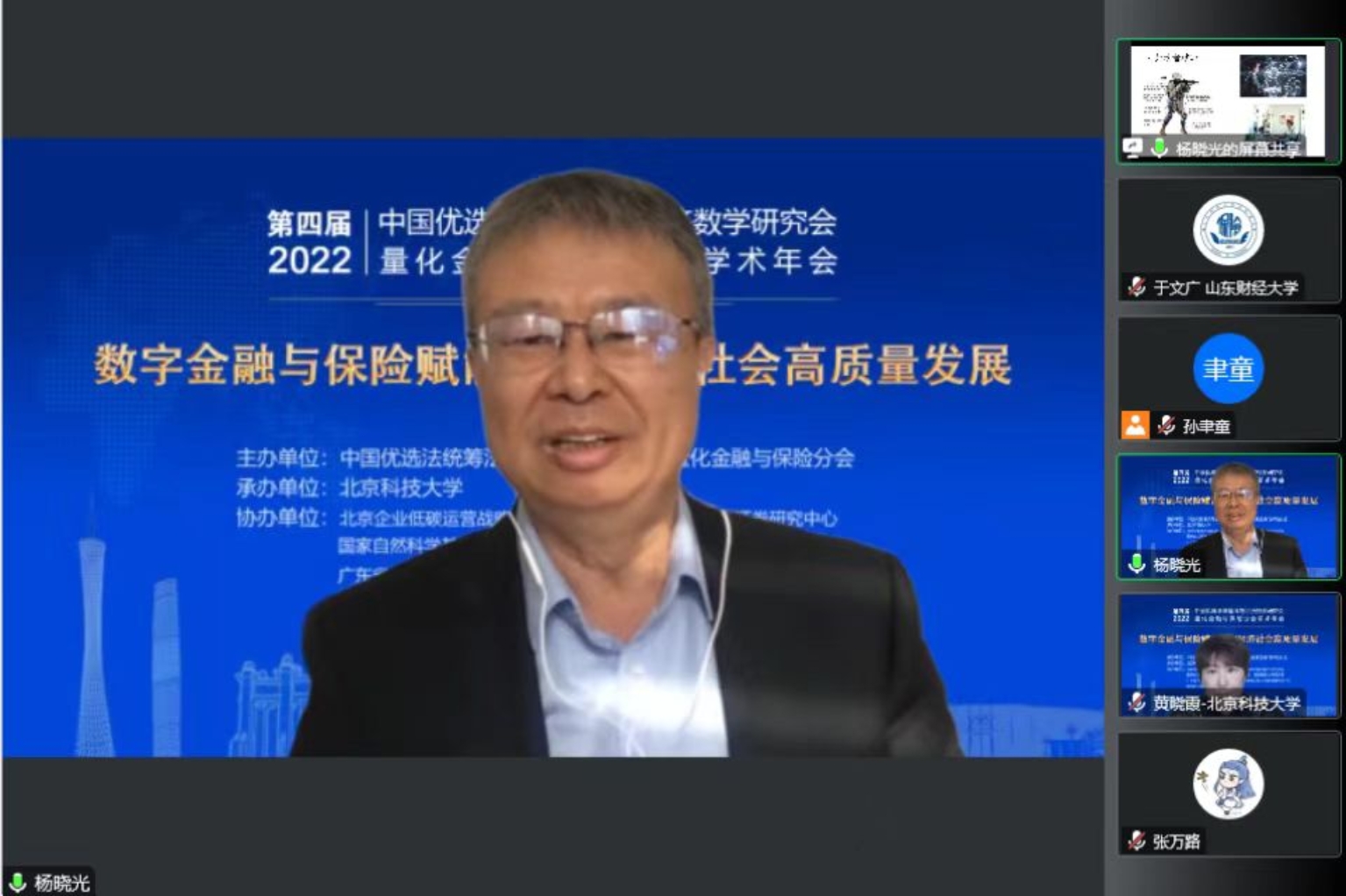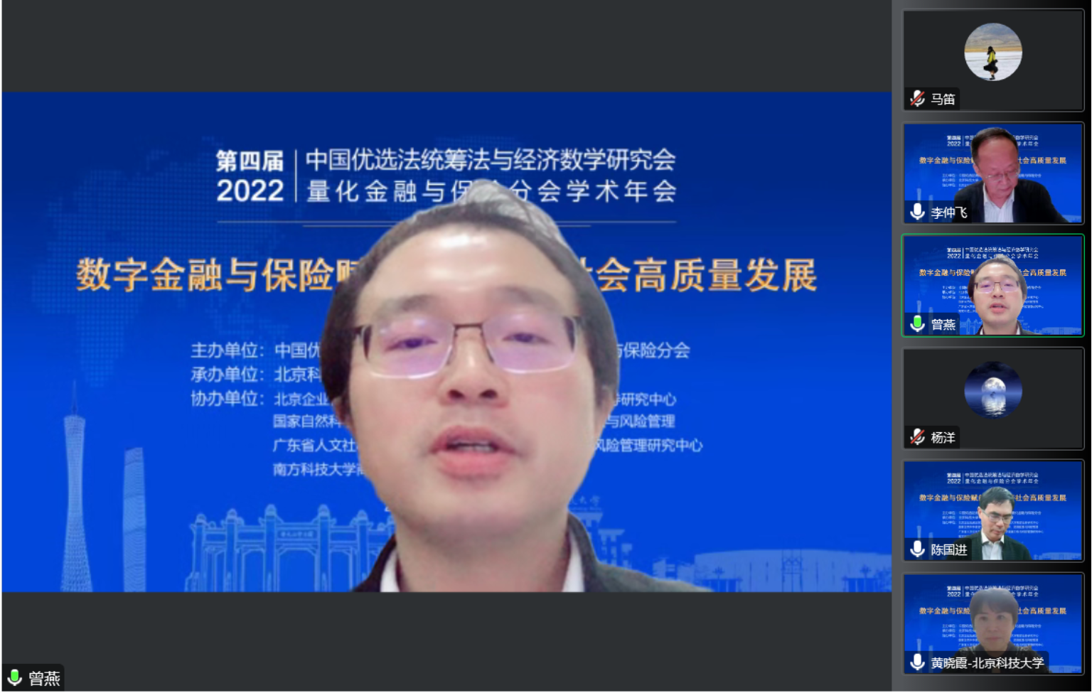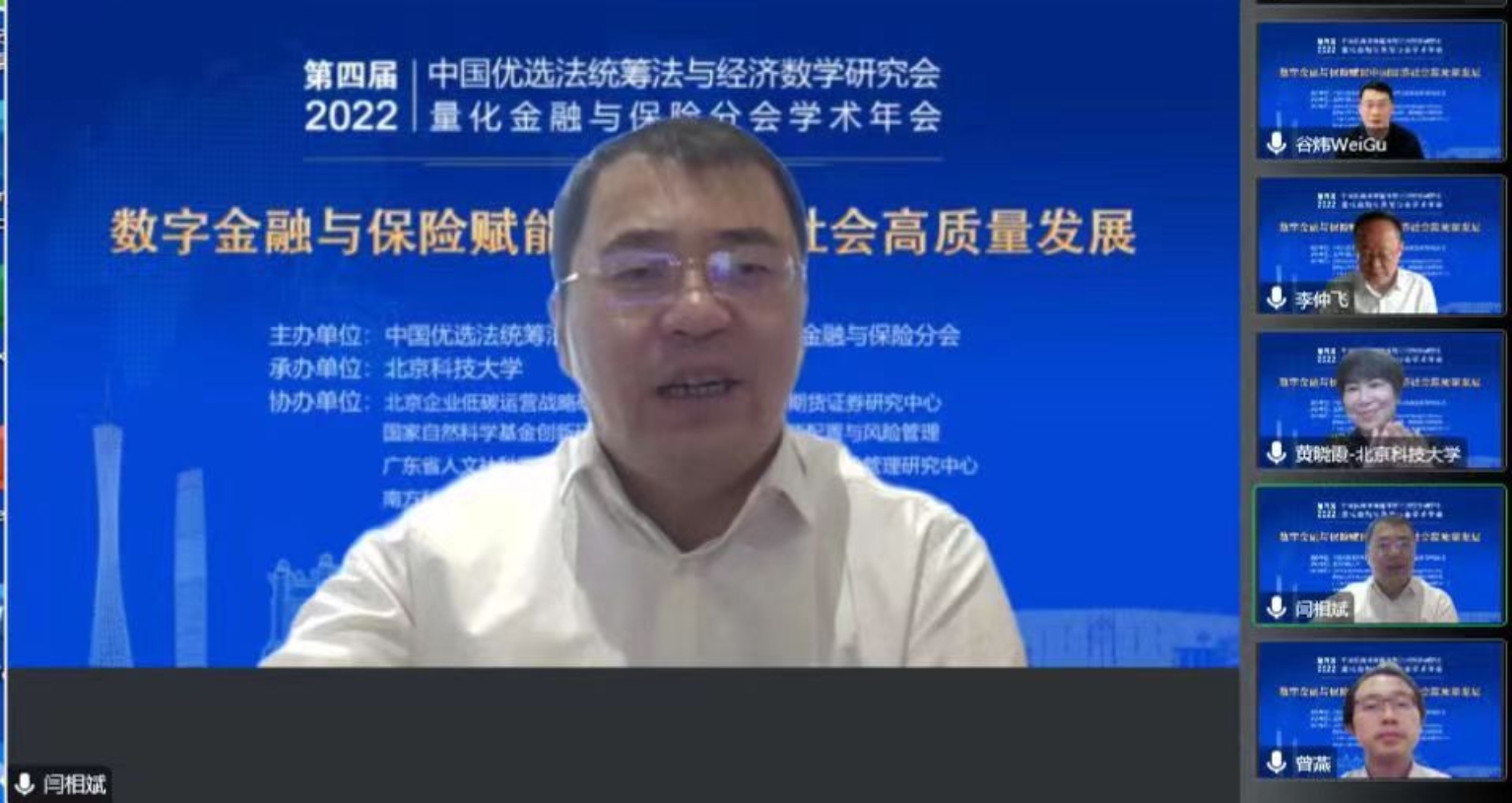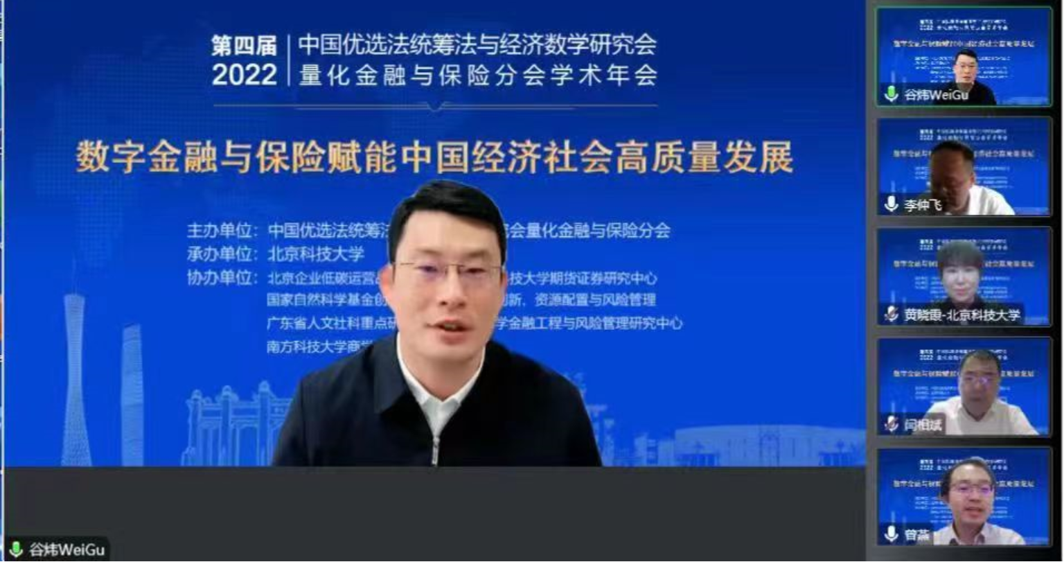 2022年12月3日至4日,第四届(2022)双法研究会量化金融与保险分会学术年会在线胜利召开。本届年会由中国优选法统筹法与经济数学研究会(简称中国“双法”研究会)量化金融与保险分会主办,北京科技大学承办,北京企业低碳运营战略研究基地、北京科技大学期货证券研究中心、国家自然科学基金创新研究群体:金融创新、资源配置与风险管理、广东省人文社科重点研究基地:中山大学金融工程与风险管理研究中心,南方科技大学商学院金融系协办。
