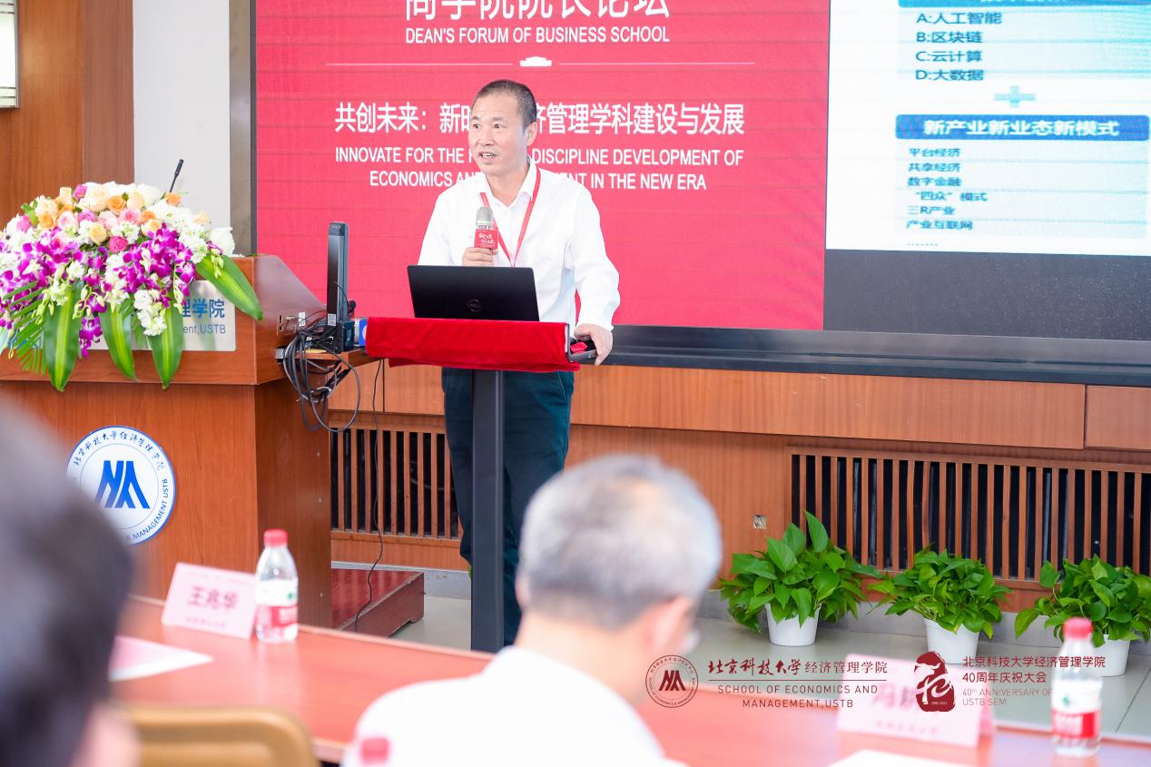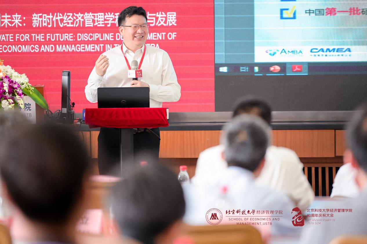 北京科技大学江南在线客服院长闫相斌教授为论坛致辞。闫院长首先代表学院向支持和参加此次论坛的各兄弟院校院长、嘉宾、校友、老师和同学们表示热烈的欢迎和衷心的感谢!随后,闫院长从“数字化”新时代背景出发,基于经济和社会发展对复合型人才培养的要求,提出各商学院在加速推动我国经济数字化进程和产业链创新方面大有可为。最后闫院长表示,希望借此论坛学习各兄弟院校在新时代下建设和发展经济管理学科的宝贵经验,强化北科经管教育内涵,完善学科培养体系,提升办学质量,迈向更高的台阶。