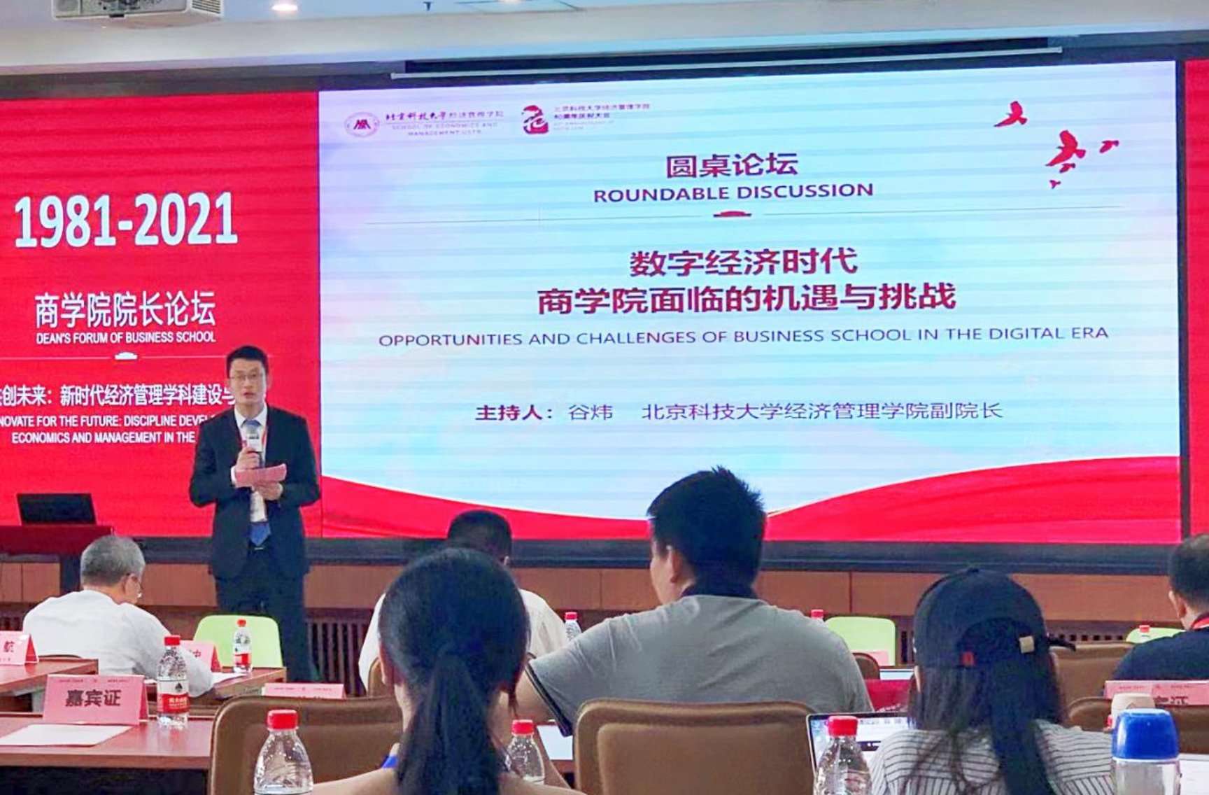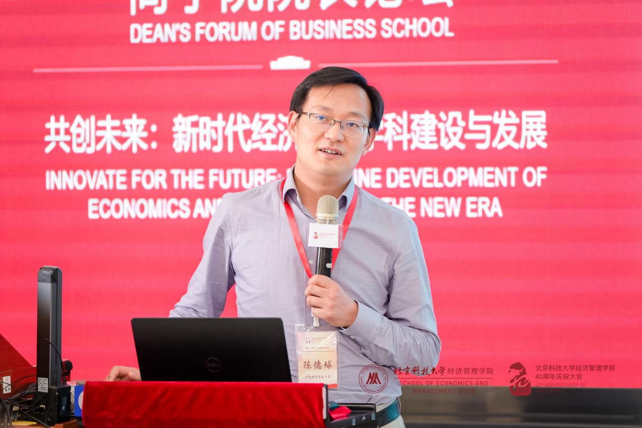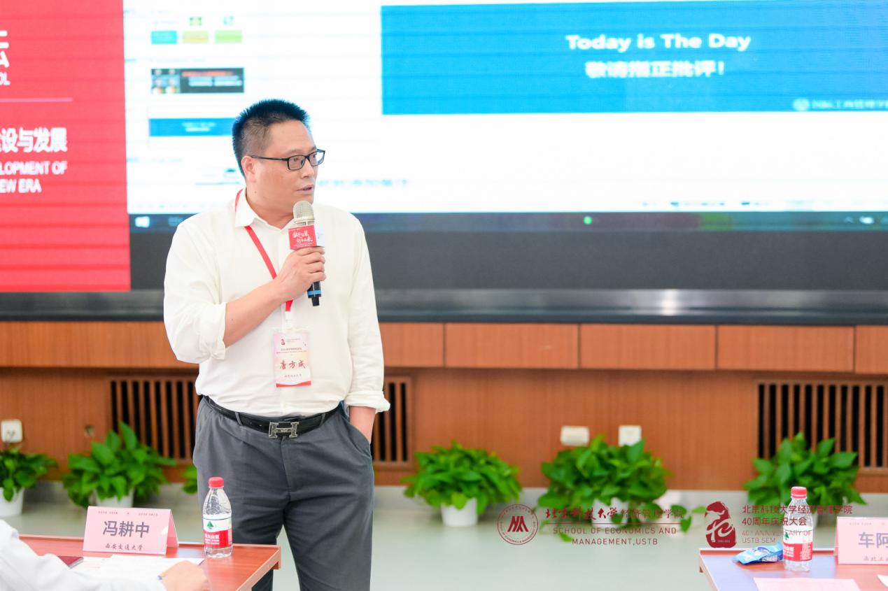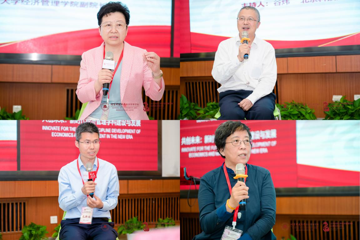 本次院长论坛的最后一个环节是圆桌讨论,主题为“数字经济时代商学院面临的机遇与挑战”,由北京科技大学江南在线客服副院长谷炜主持,北京邮电大学江南在线客服院长王欢、南京财经大学信息工程学院院长曹杰、北京工商大学商学院院长毛新述和北京信息科技大学江南在线客服院长曲立参与。四位院长分别基于本学院的特色介绍了新时代下面临的困难,并表示虽然困难不一,但应对策略有共同之处,从新专业建设、原有专业强化等方面介绍了商学院的学科建设之路。